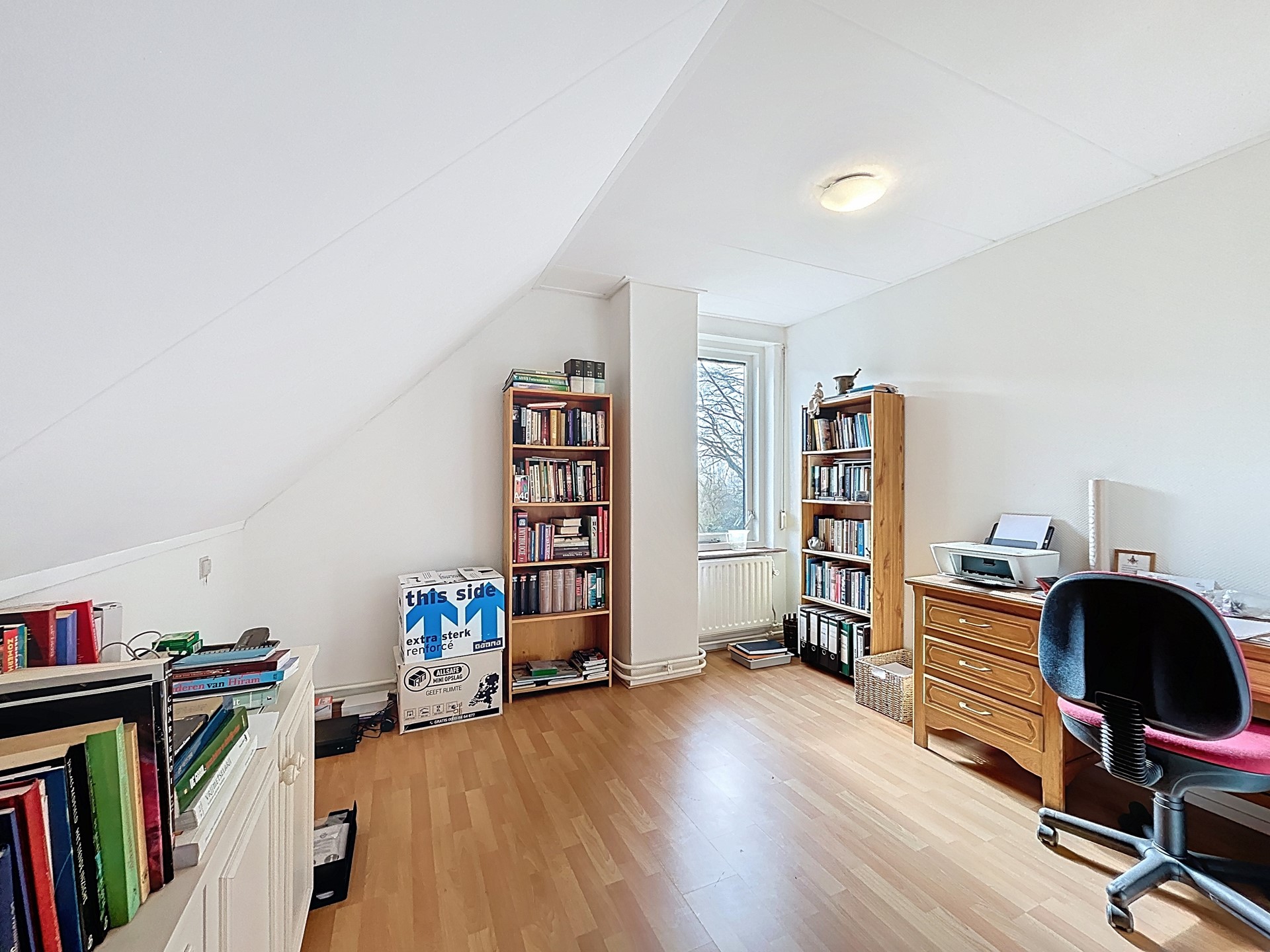De tweede verdieping wordt betreden middels het vlizoluik. Deze verdieping is alleen bruikbaar voor opslag.
