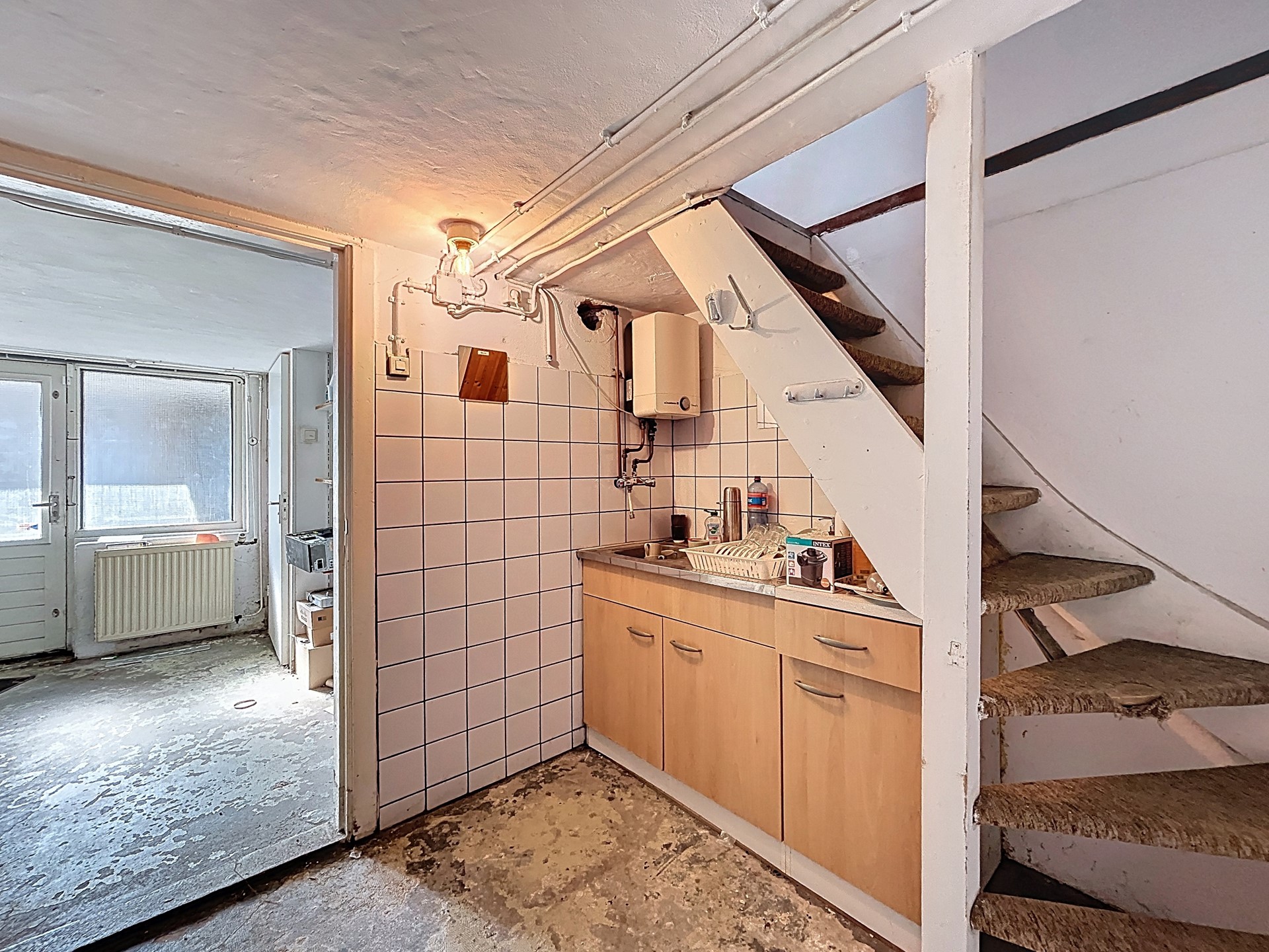 Bij het betreden van het pand langs de voorzijde lopen we eerst de winkel binnen. Dit is de verdieping die je dus erg creatief kunt gebruiken voor je eigen bedrijf, maar eventueel ook om kan bouwen tot woning. Hier is tevens de vernieuwde meterkast te vinden en is middels de trap de kelder en de (woon-)verdieping te betreden.