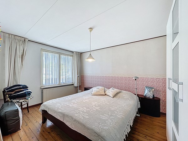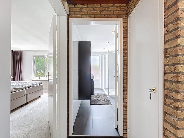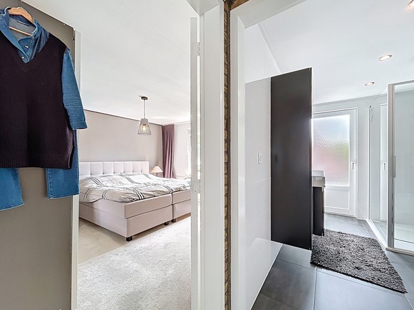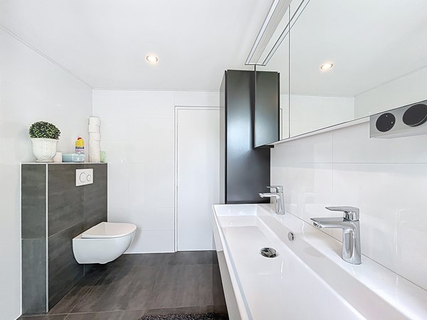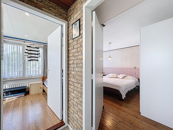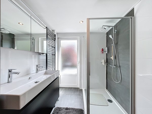 De overloop is voorzien van een inbouwkast en biedt toegang tot de drie slaapkamers en de badkamer. En ook hier kan je weer de ruimte ervaren. Alle slaapkamers zijn groot genoeg voor een tweepersoonsbed en een kledingkast. De badkamer is in 2019 nog volledig vernieuwd. Dit is te zien aan de luxe die het uitstraalt. Het is voorzien van een dubbele wastafel, een handdoekradiator, een fraaie inloopdouche en een toilet.
