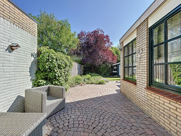 Recent is er 70 m² perceel bijgekocht, waardoor je nu van 354 m² perceel kunt genieten rondom de woning. De achtertuin is daardoor langs de woning toegankelijk en het beste is nog wel dat deze een ligging op het Zuiden heeft, hierdoor kan je echt optimaal genieten van de zon. Aan de achtergevel is een fraai zonnescherm gemonteerd om op de warmste zomerdagen toch genoeg verkoeling te hebben. De voor- en achtertuin is uitermate netjes onderhouden en het kunstgras zorgt verder voor minimaal onderhoud.