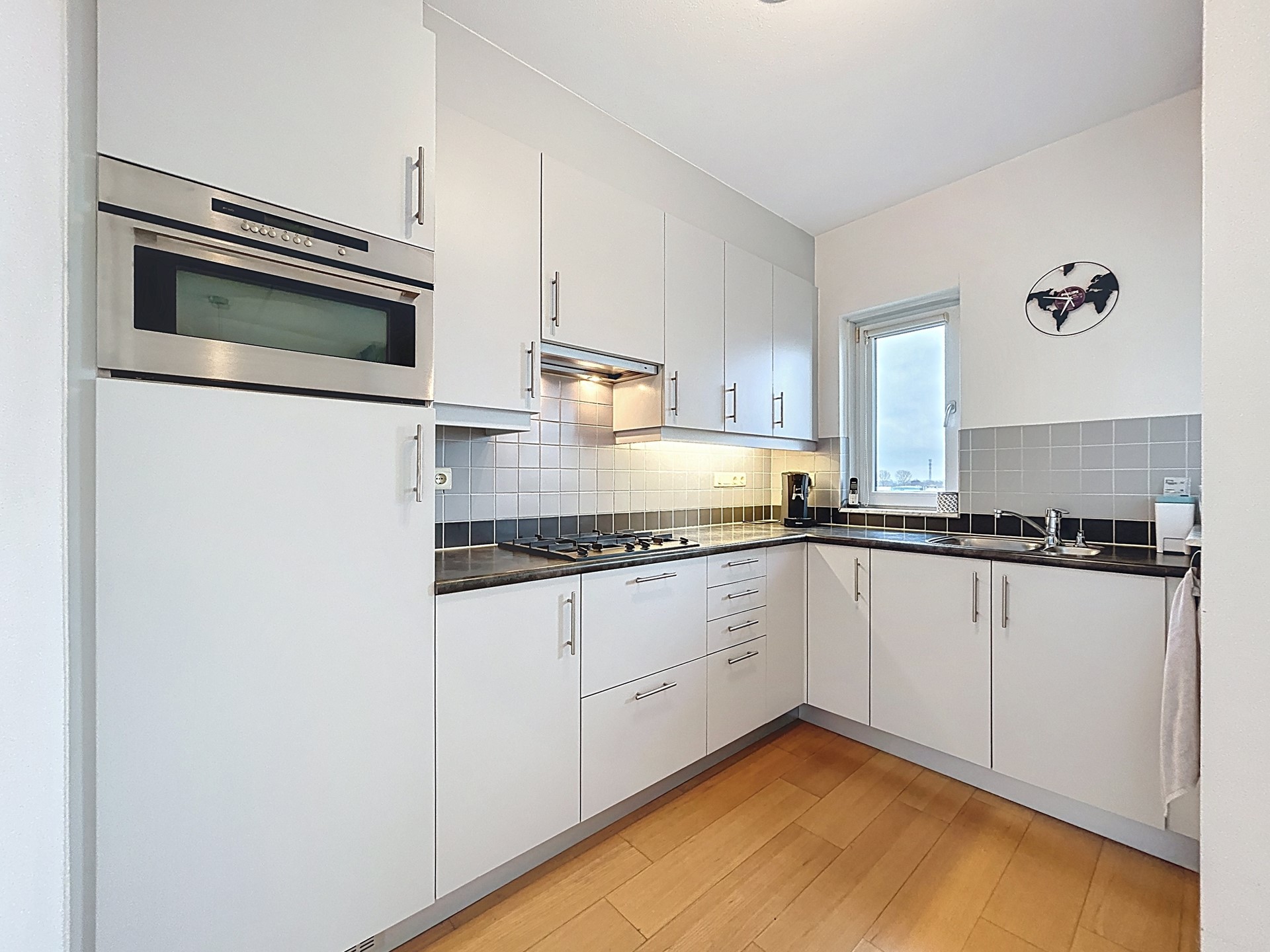 Wanneer we het complex betreden, stappen we de lift in, welke u brengt tot de 3e woonlaag. Hier is de voordeur van uw appartement te vinden. Bij binnenkomst van het appartement betreden we de hal met garderobe. De hal biedt toegang tot de woonkamer, de badkamer, het toilet en de twee slaapkamers. De royale woonkamer met keuken is circa 55 m² groot en heeft een fantastisch uitzicht. Stelt u zich toch eens voor: u neemt plaats in de bank en geniet met uw bakje koffie van de passerende schepen. Dit is een plaatje dat nooit verveelt. Het is net een schilderij dat ieder moment van de dag verandert! Tevens is er genoeg ruimte voor een lange eettafel. Vervolgens lopen we richting de keuken. Deze fraaie keuken is voorzien van een combi-oven, 5 gaspitten met afzuiging en een koelkast. In de keuken heb je nog toegang tot de technische ruimte met vernieuwde CV-ketel (2025), de mechanische afzuiging en plek voor een vrieskast. Langs de keuken en de eetruimte wordt het balkon op het westen betreden. Hier heb je vanaf de middag tot laat in de avond het genot van de zon en het heeft een fraai panoramisch uitzicht over Breskens met als highlights het Zeeuwse-Vlaamse polderlandschap en de moderne jachthaven! Dit balkon is in de winter tevens af te sluiten middels een doorzichtig rolluik. Het balkon aan de oostkant is gelegen achter de woonkamer en zorgt voor de prachtige uitzichten met de zon in de ochtend.