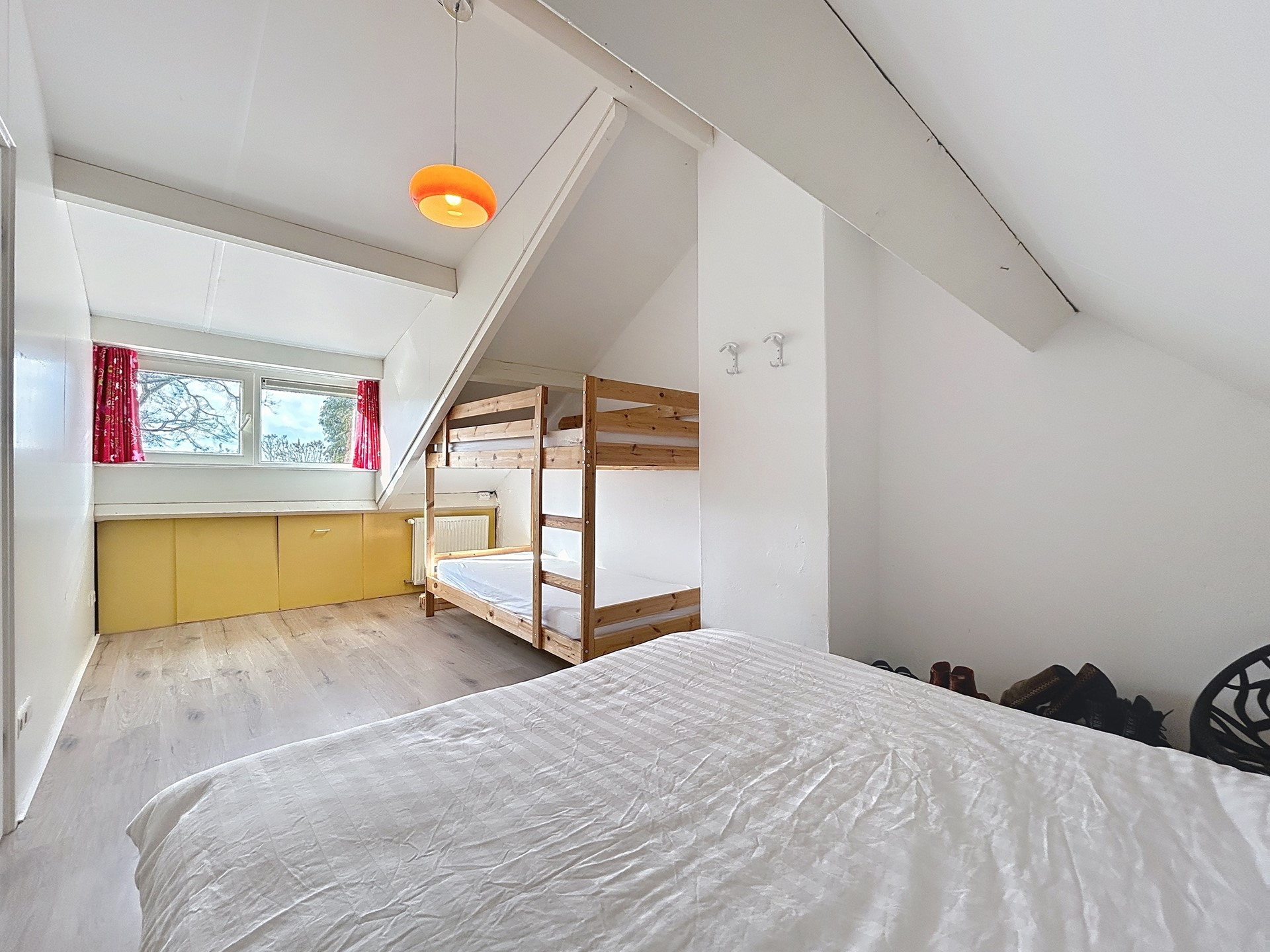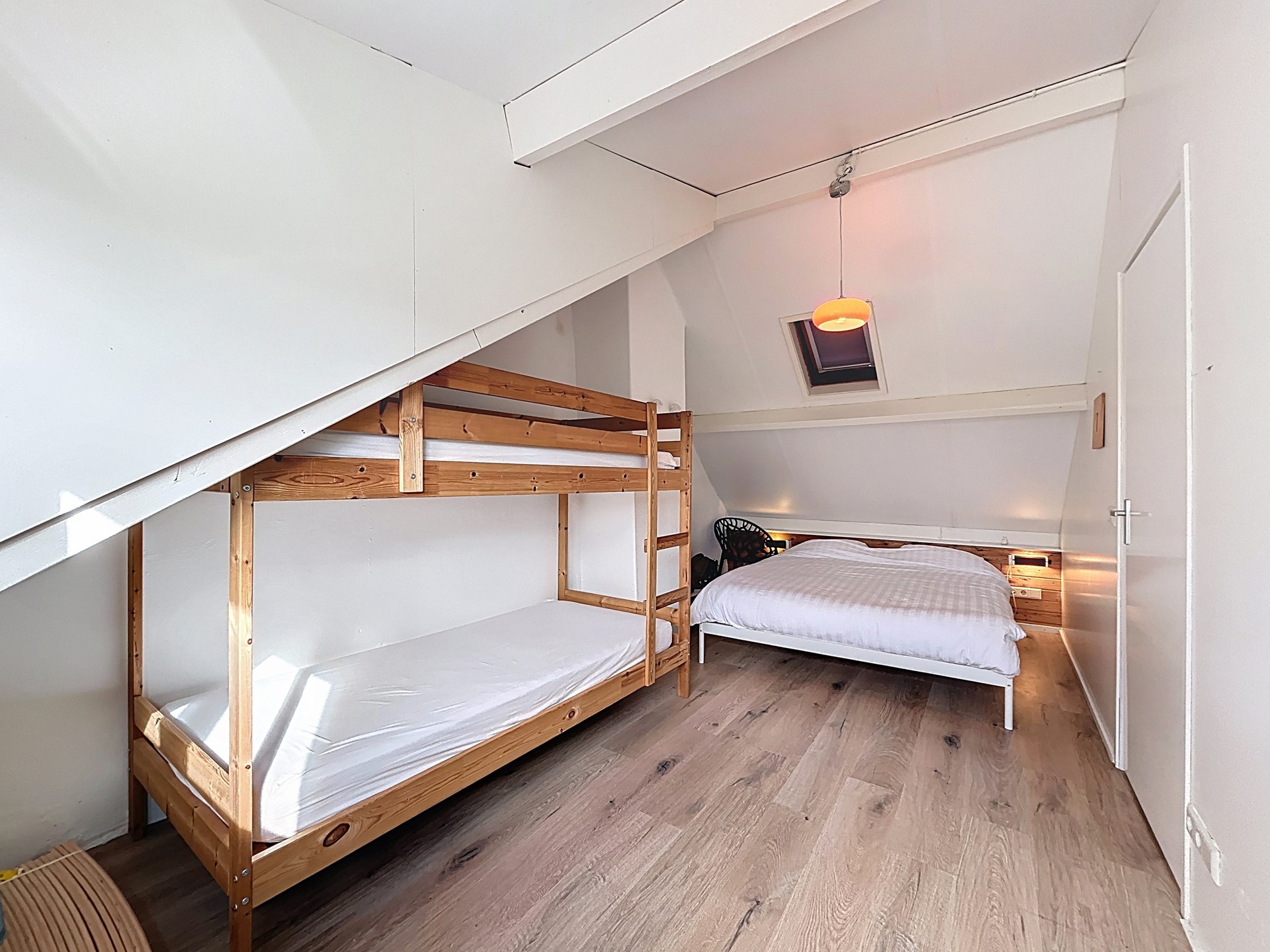 Middels de trap in de woonkamer wordt de verdieping betreden. Hier kom je uit op een ruime overloop waar tevens plaats is voor het eerste bed. Door deze overloop af te sluiten is dus makkelijk een tweede slaapkamer te creëren. De overloop zelf biedt nog plaats voor de wasmachine met de wasmachineaansluiting en de verouderde CV-ketel. De dakkapel aan de achterzijde zorgt voor extra ruimte. Deze dakkapel loopt door tot in de slaapkamer, waardoor je ook hier, in combinatie met de hoge nok, genoeg ruimte hebt voor een tweepersoonsbed, kledingkast én een bureau. Geniet vanuit de slaapkamer van het mooie zicht over je achtertuin met daarachter de Zeeuwse polder.