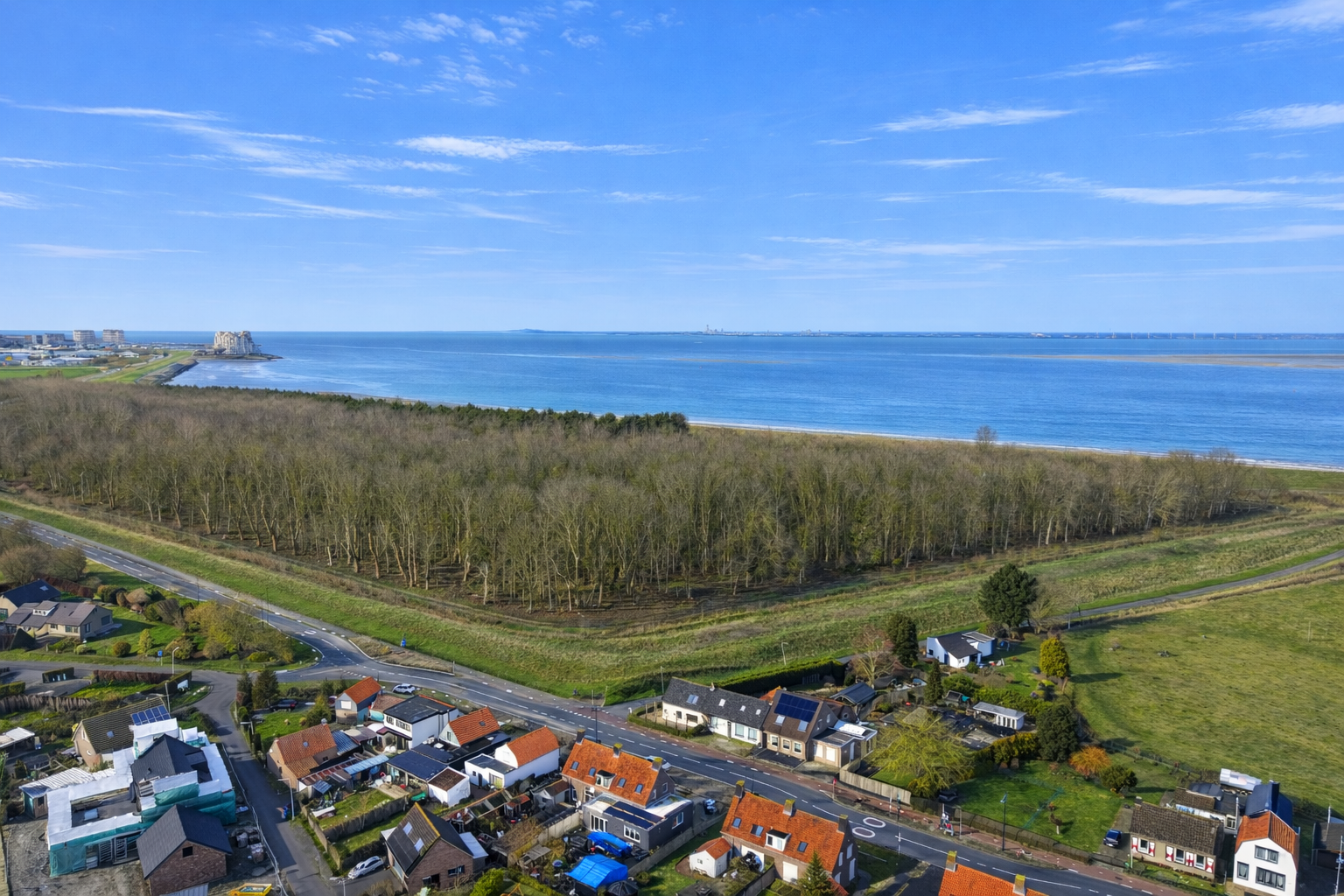 Nummer Eén is gelegen op ongeveer 3 kilometer van het centrum van Breskens. Hierdoor zijn alle nodige voorzieningen, zoals de supermarkt, restaurants en sportverenigingen op fietsafstand te vinden. In Nummer Eén ervaar je zowel het dorpse gevoel als de vrijheid van het buitengebied. Met de hond en/of je partner kan je makkelijk een heerlijke wandeling maken door de polder, over de zeedijk of in het loofbos ‘de Hans van Kruiningenpolder’ aan de overkant van de straat.