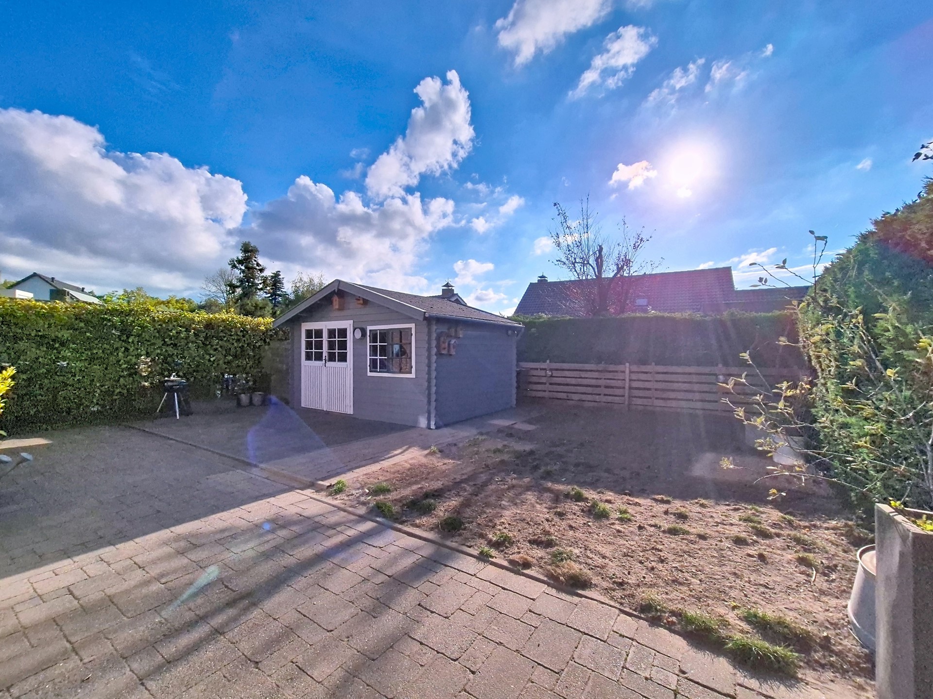 De achtertuin heeft een diepte van circa 10 meter en een fijne ligging op het zuidwesten. Hierdoor kan je optimaal genieten van de zon in je tuin. Tevens is er nog een tuinhuis als bergruimte voorzien en is de tuin achterom toegankelijk.