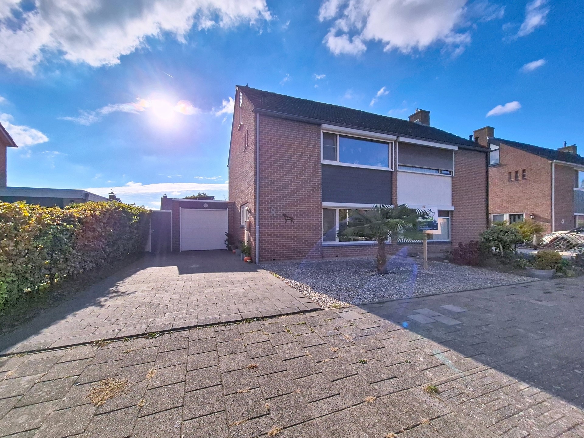 Het diepe trottoir zorgt ervoor dat de woning ver van de weg is gelegen en met de diepe oprit kan je meerdere auto’s naast het huis parkeren. Verder is de woning voorzien van een onderhoudsvriendelijke voortuin.