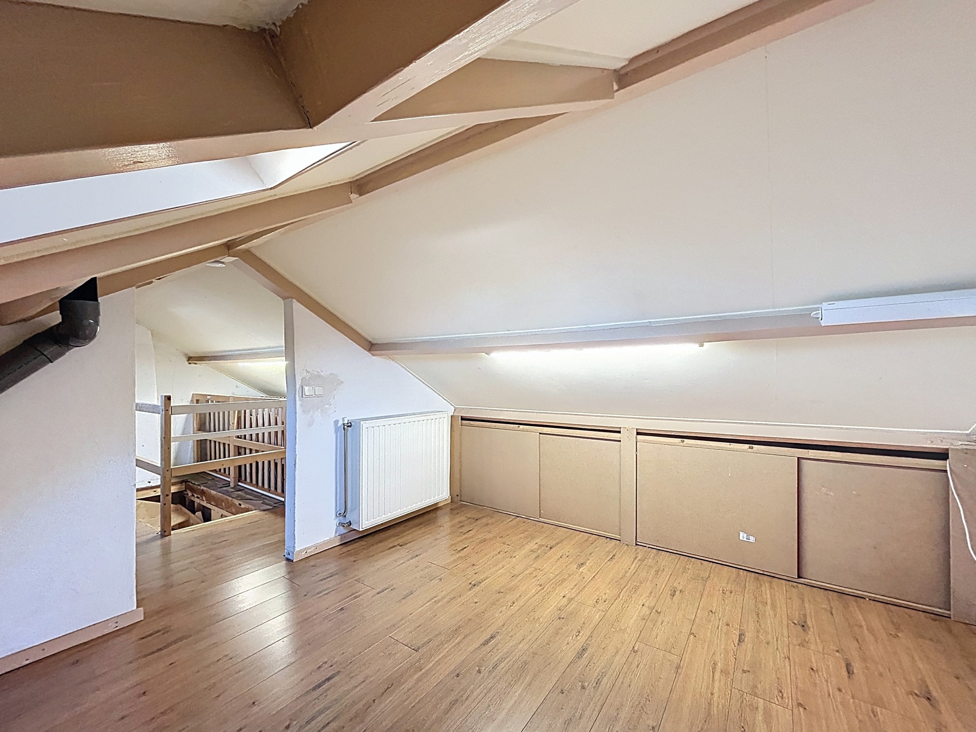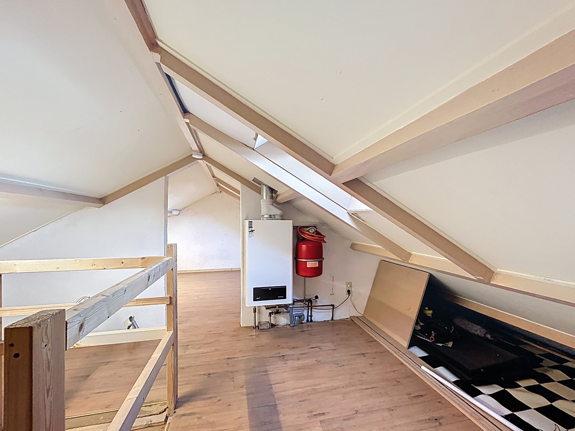 Op de overloop is tevens nog een vaste trap gemaakt naar de tweede verdieping. Hier is eventueel een extra slaapkamer te creëren voor de kinderen. Met een hoogte van 1,9 meter is dit 11 m² overige inpandige woonoppervlakte in de woning. Tevens is op deze verdieping de CV-ketel uit ca. 2006 te vinden.