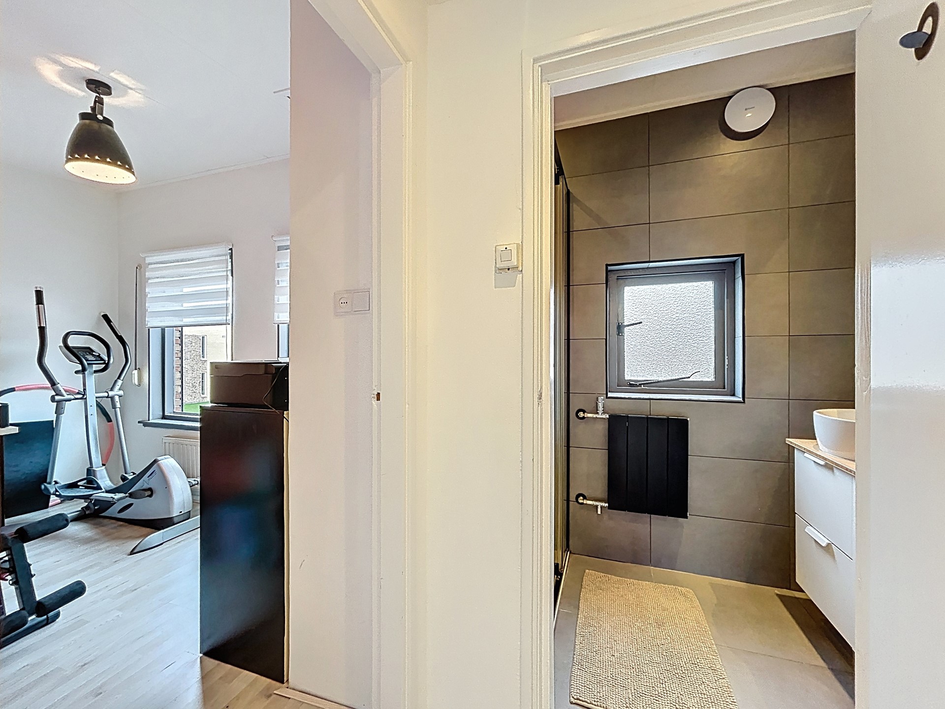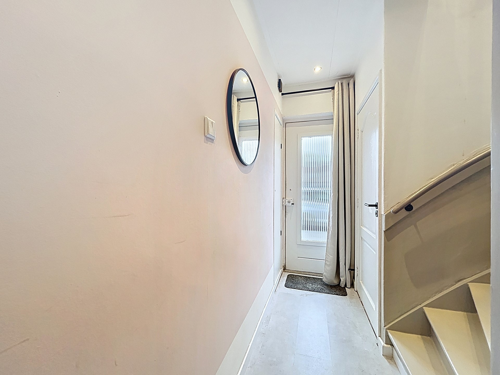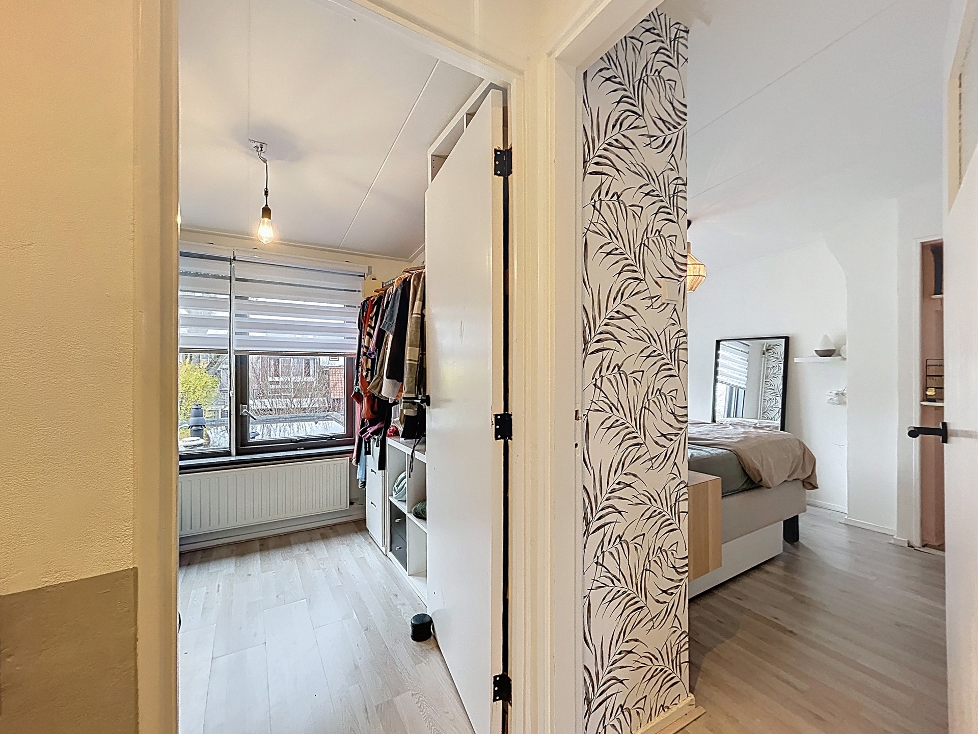 De overloop van de verdieping biedt toegang tot de drie slaapkamers en de badkamer. De grootste slaapkamer is groot genoeg voor een tweepersoonsbed en een kledingkast. De twee kleinere kamers zijn leuke kinderkamers voor een éénpersoonsbed, een kast en/of een bureau. Ook kan je één van die kamers gebruiken als walk-in closet. Tenslotte is de badkamer ook in 2020 fraai vernieuwd en afgewerkt met een inloopdouche en een handige wastafel met meubel en spiegelkast.