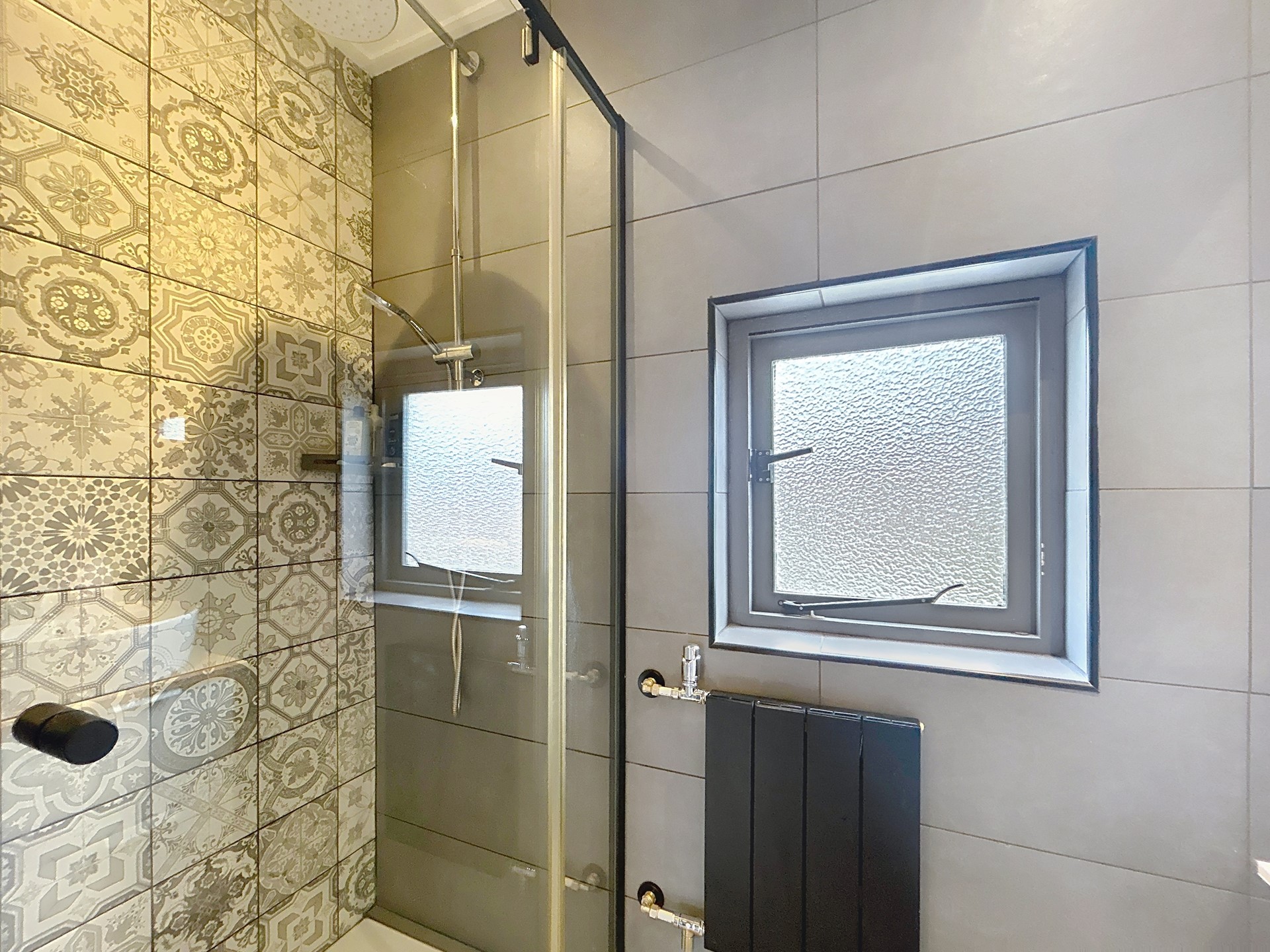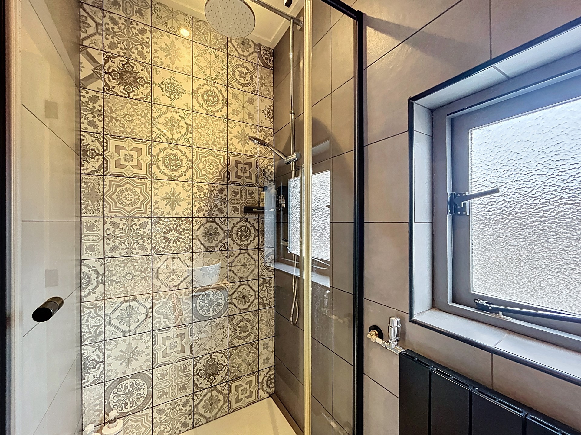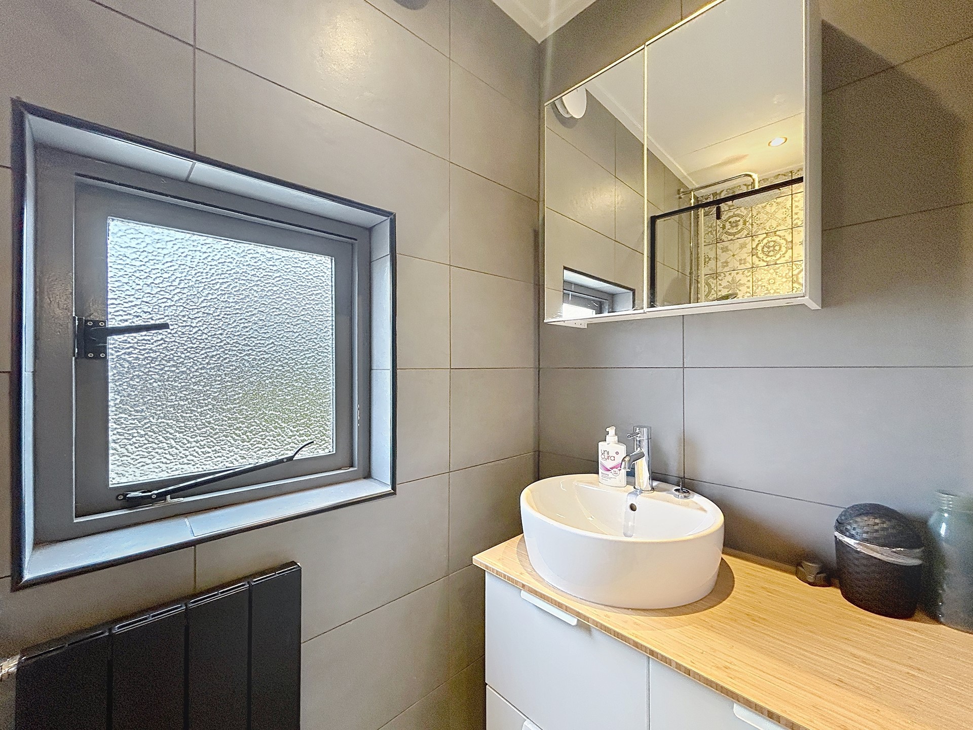 De overloop van de verdieping biedt toegang tot de drie slaapkamers en de badkamer. De grootste slaapkamer is groot genoeg voor een tweepersoonsbed en een kledingkast. De twee kleinere kamers zijn leuke kinderkamers voor een éénpersoonsbed, een kast en/of een bureau. Ook kan je één van die kamers gebruiken als walk-in closet. Tenslotte is de badkamer ook in 2020 fraai vernieuwd en afgewerkt met een inloopdouche en een handige wastafel met meubel en spiegelkast.