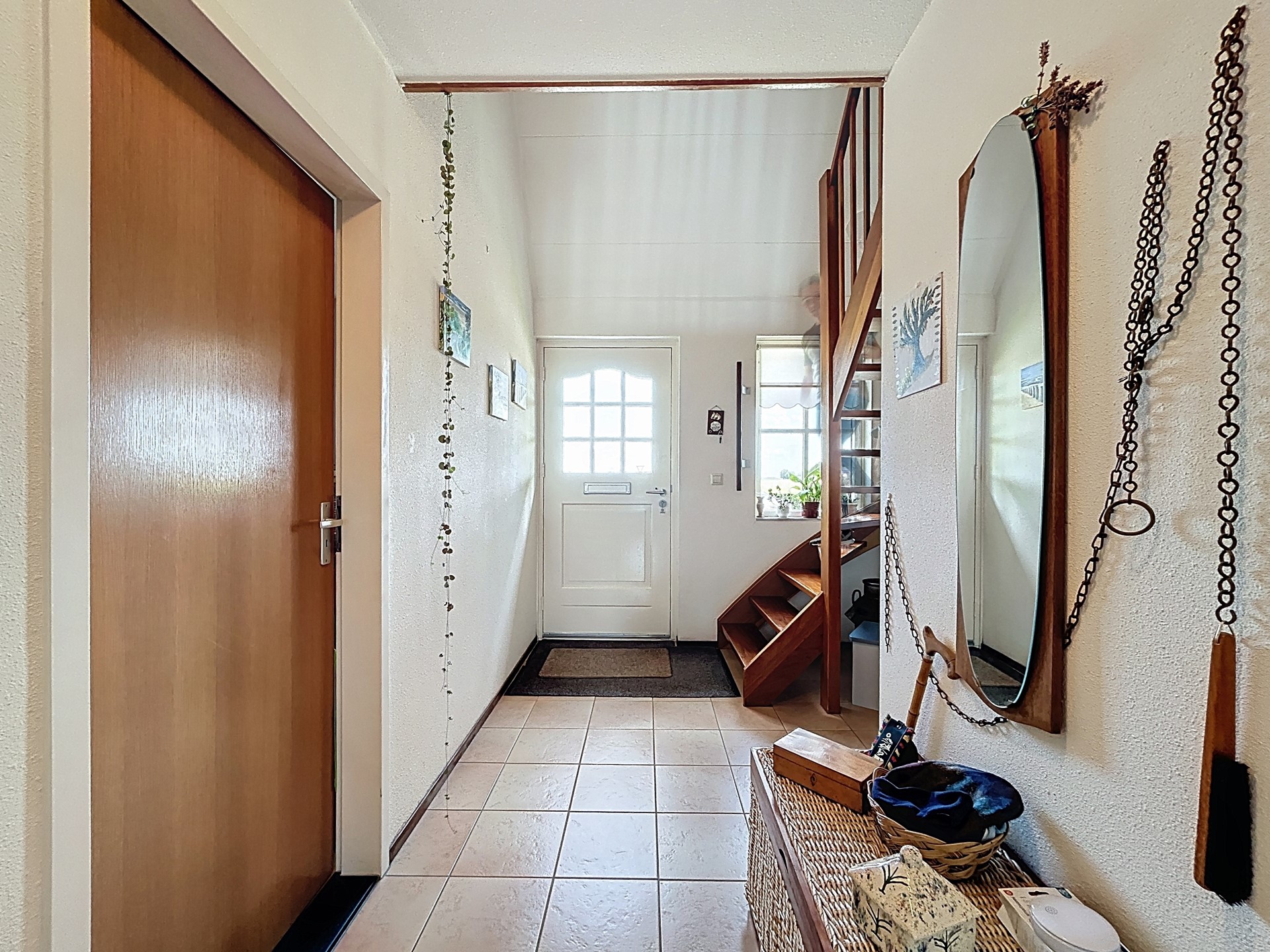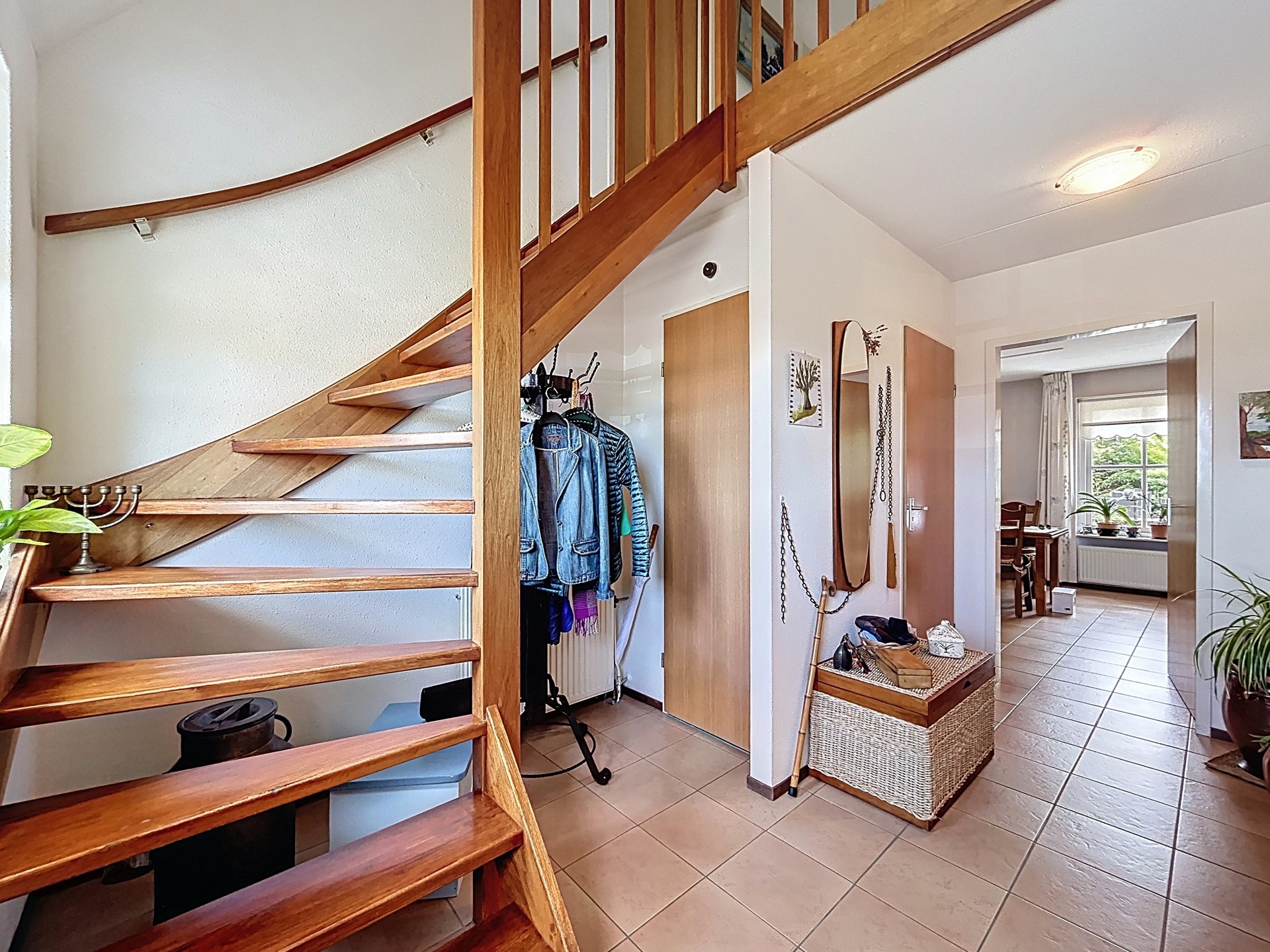 Via de voordeur betreed je de ruime entree met toilet, meterkast en toegang tot de slaapkamer op de begane grond. Deze is ideaal als logeerkamer, werkkamer, kantoor, hobbyruimte of levensloopbestendige slaapruimte. De entree is ruim te noemen dankzij zijn hoogte met de trapopgang naar de vide.