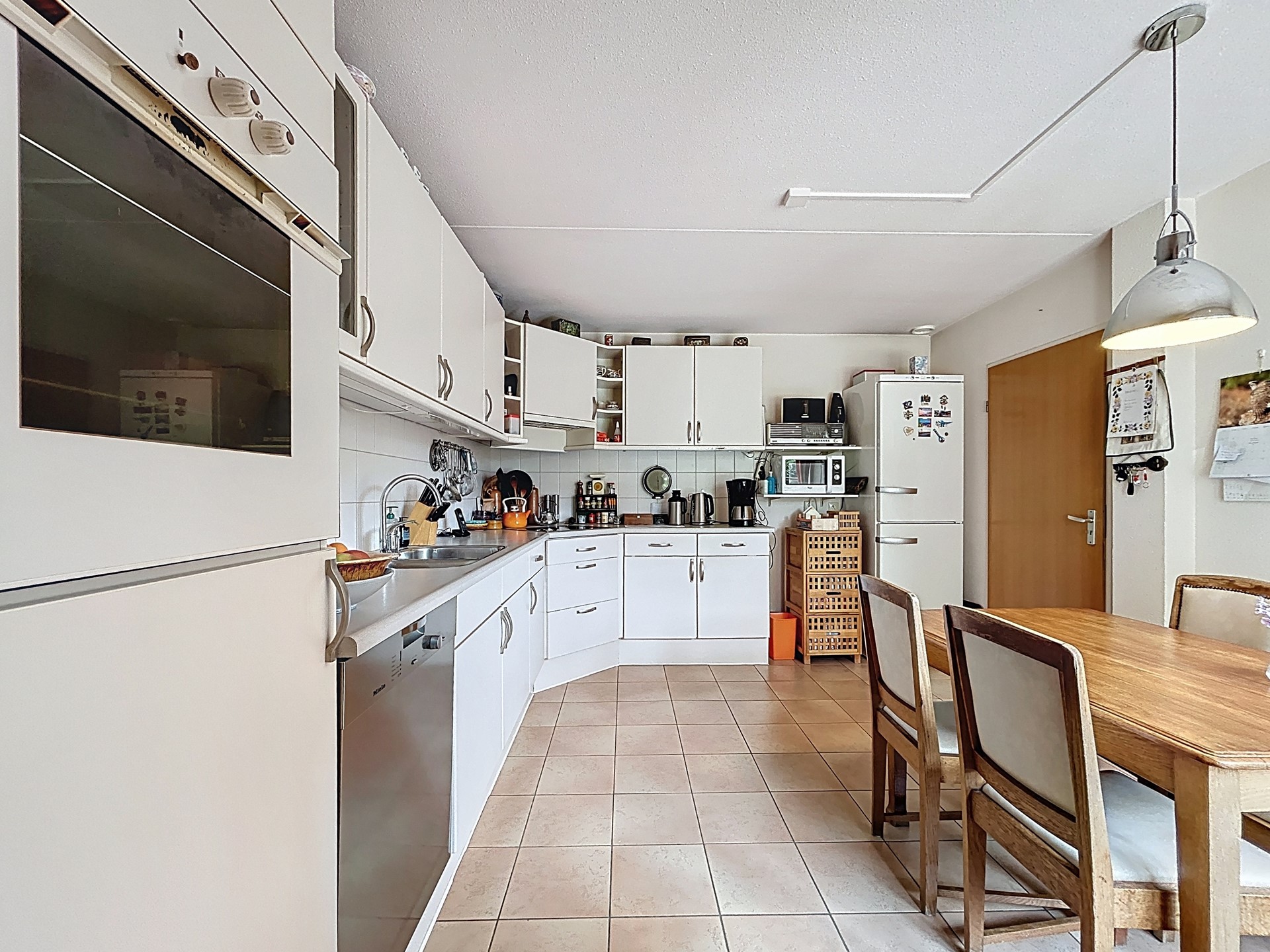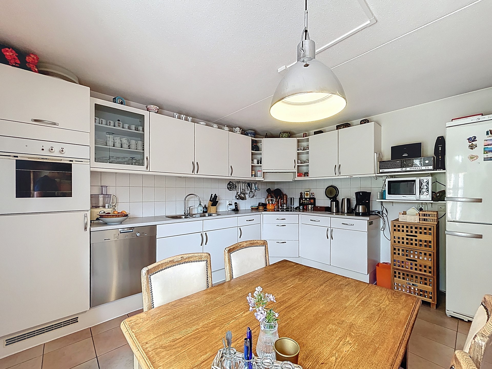 De keuken is praktisch ingericht en voorzien van inductiekookplaat, afzuigkap, oven, koelkast en vaatwasser. Aansluitend is er een handige bijkeuken met de aansluiting voor de wasmachine en hier bevind zich de CV-ketel (2019). Vanuit hier loop je door naar de diepe garage, die ook binnendoor bereikbaar is.