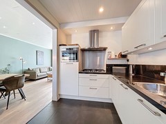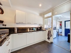 Bij binnenkomst stap je de hal binnen waar je toegang hebt tot de kelder, het toilet, de meterkast en de trap die leidt naar de eerste verdieping. De sfeervolle woonkamer is fraai afgewerkt en biedt genoeg ruimte voor een gezellige zithoek en een eettafel. Aansluitend bevindt zich de halfopen, eigentijdse keuken met een granieten aanrechtblad en diverse moderne inbouwapparaten.