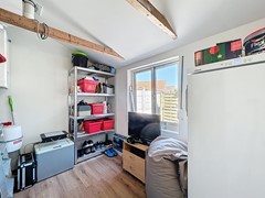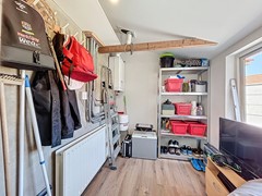 Vanuit de keuken loop je door naar de bijkeuken, waar je handige opbergkasten vindt en aansluitingen voor zowel de wasmachine als de droger. Dankzij een dakraam valt hier extra daglicht naar binnen. Tot slot is er nog een praktische en goed geïsoleerde ruimte die dienst doet als werkkamer, berging of speelkamer. Hier bevindt zich ook de cv-installatie van het merk Intergas, geplaatst in 2022.