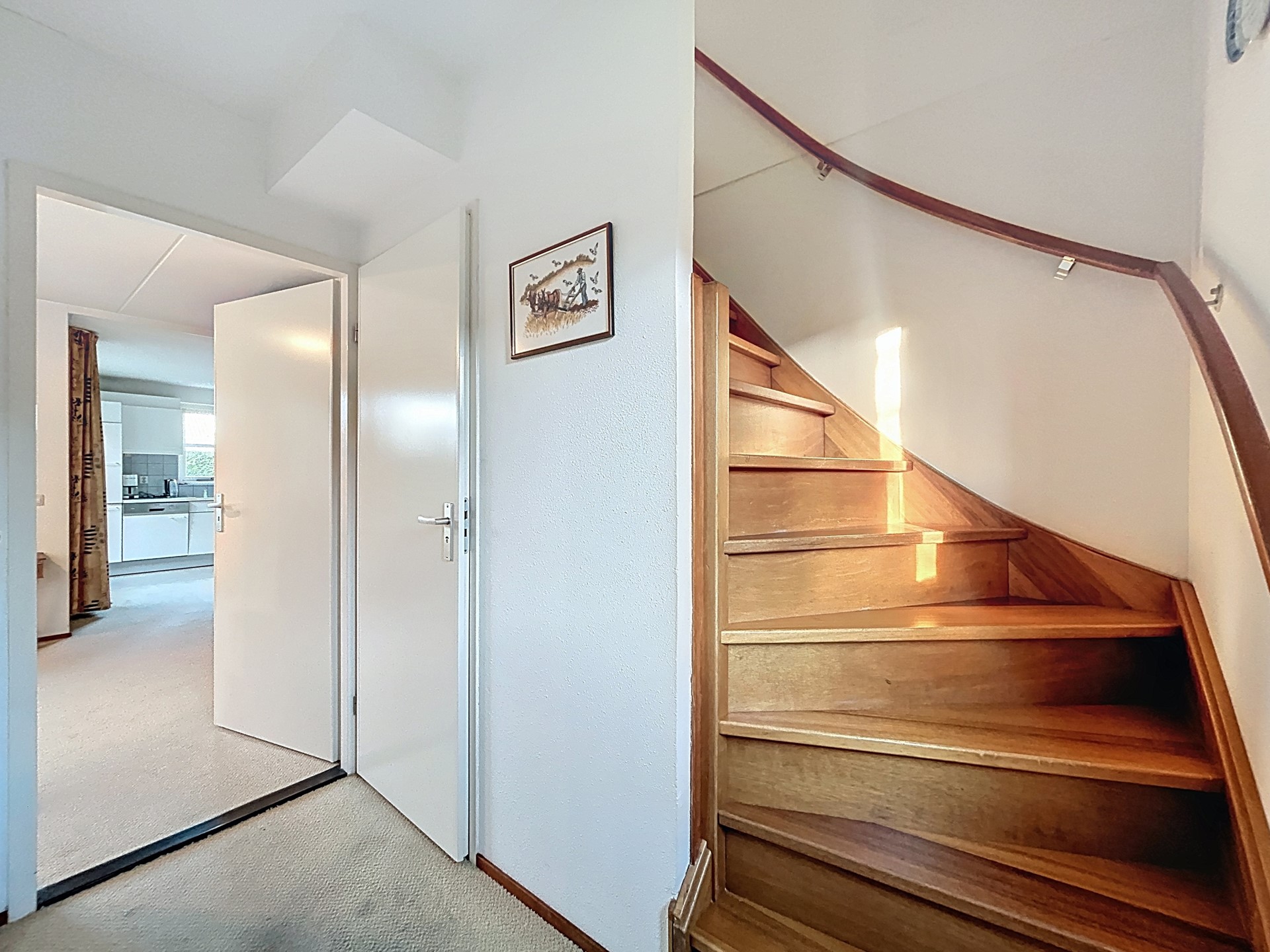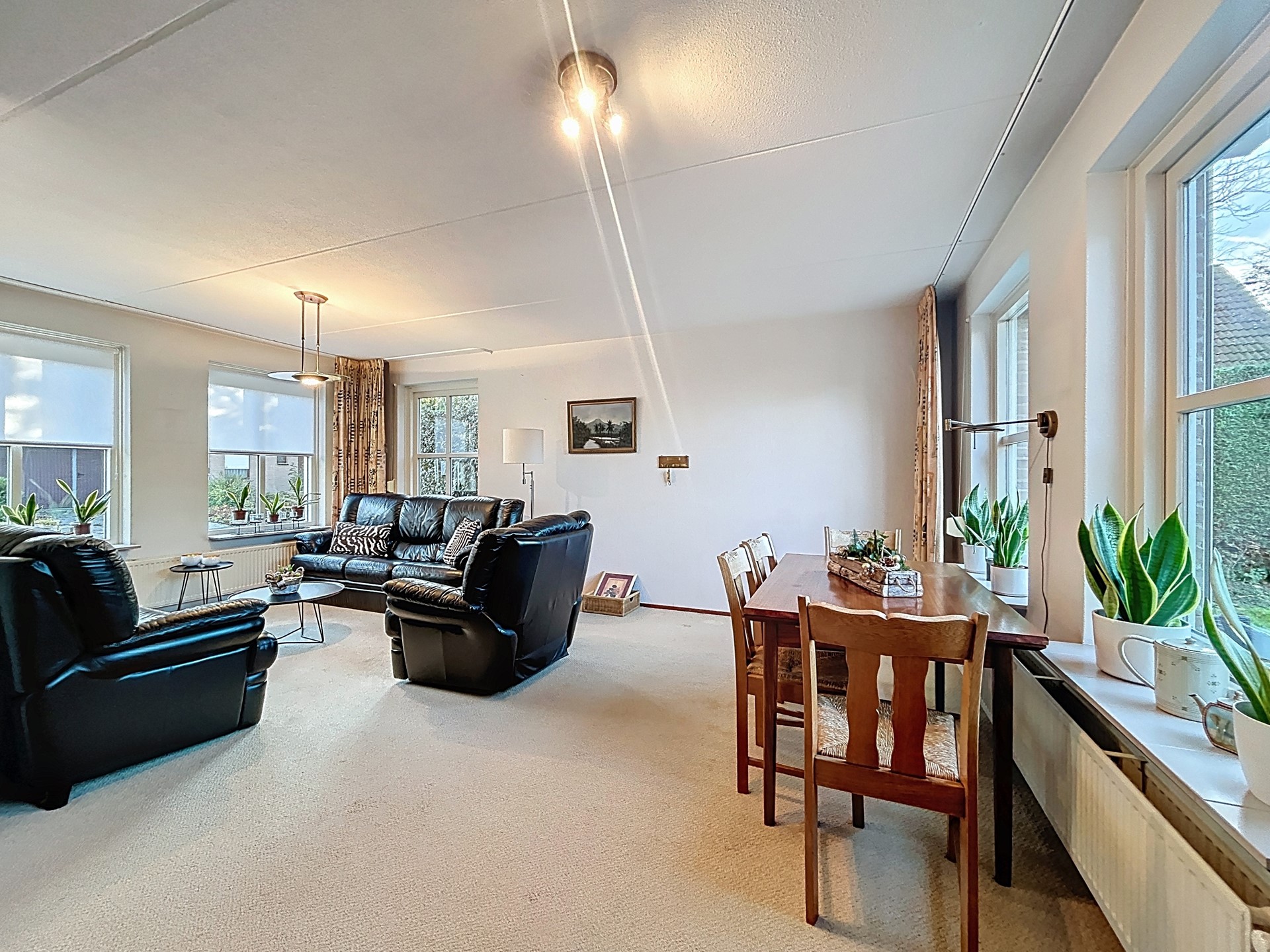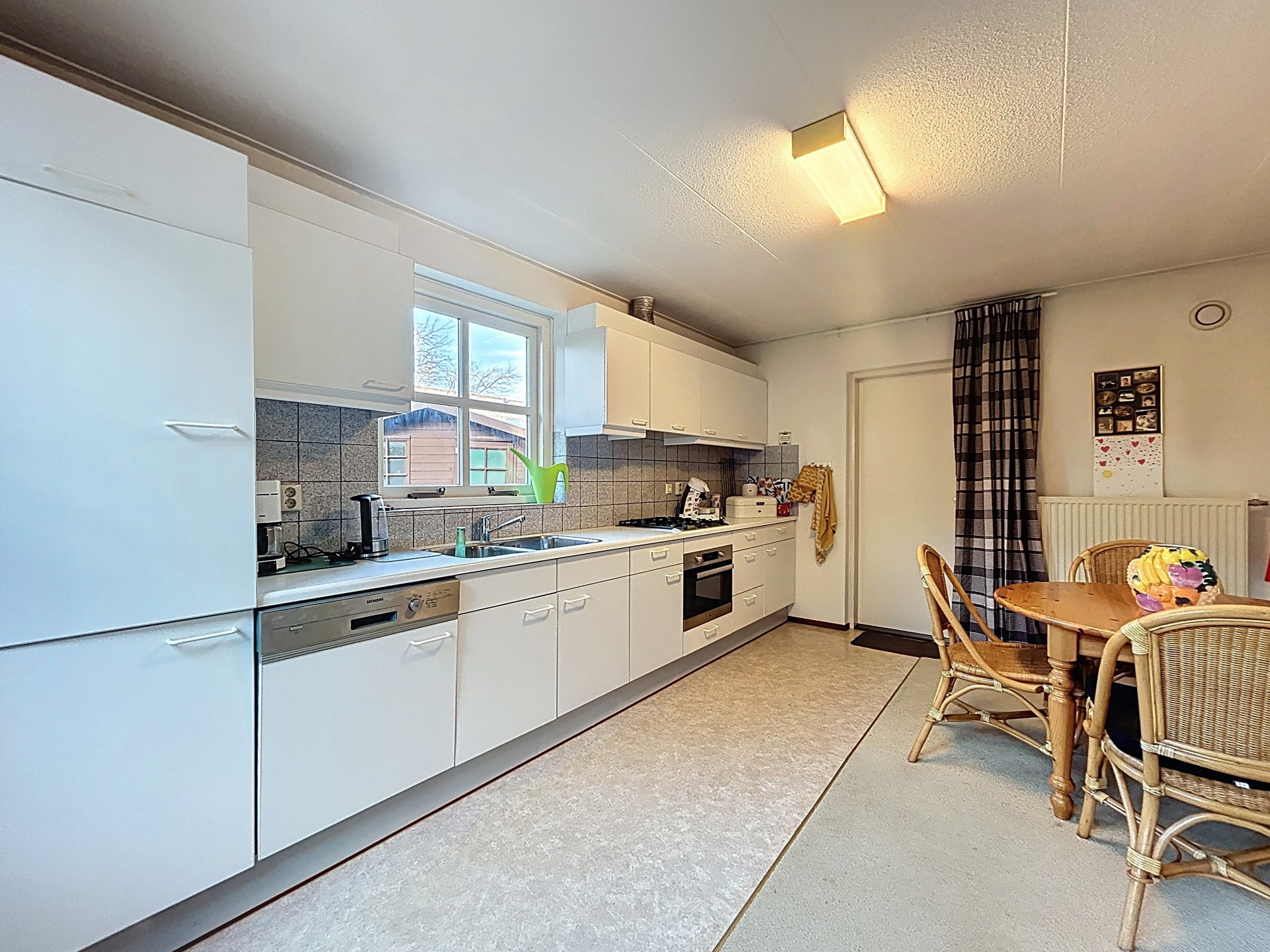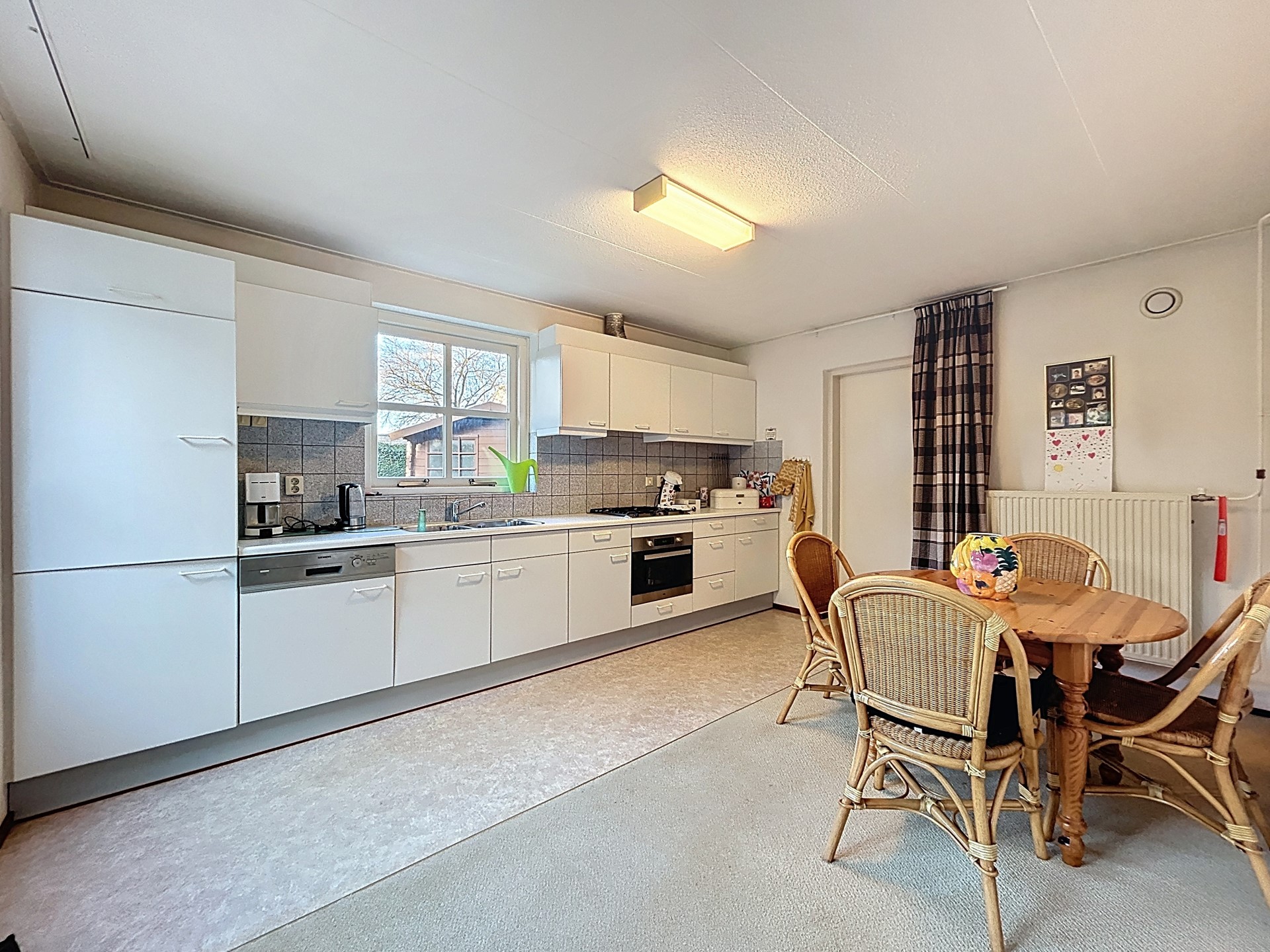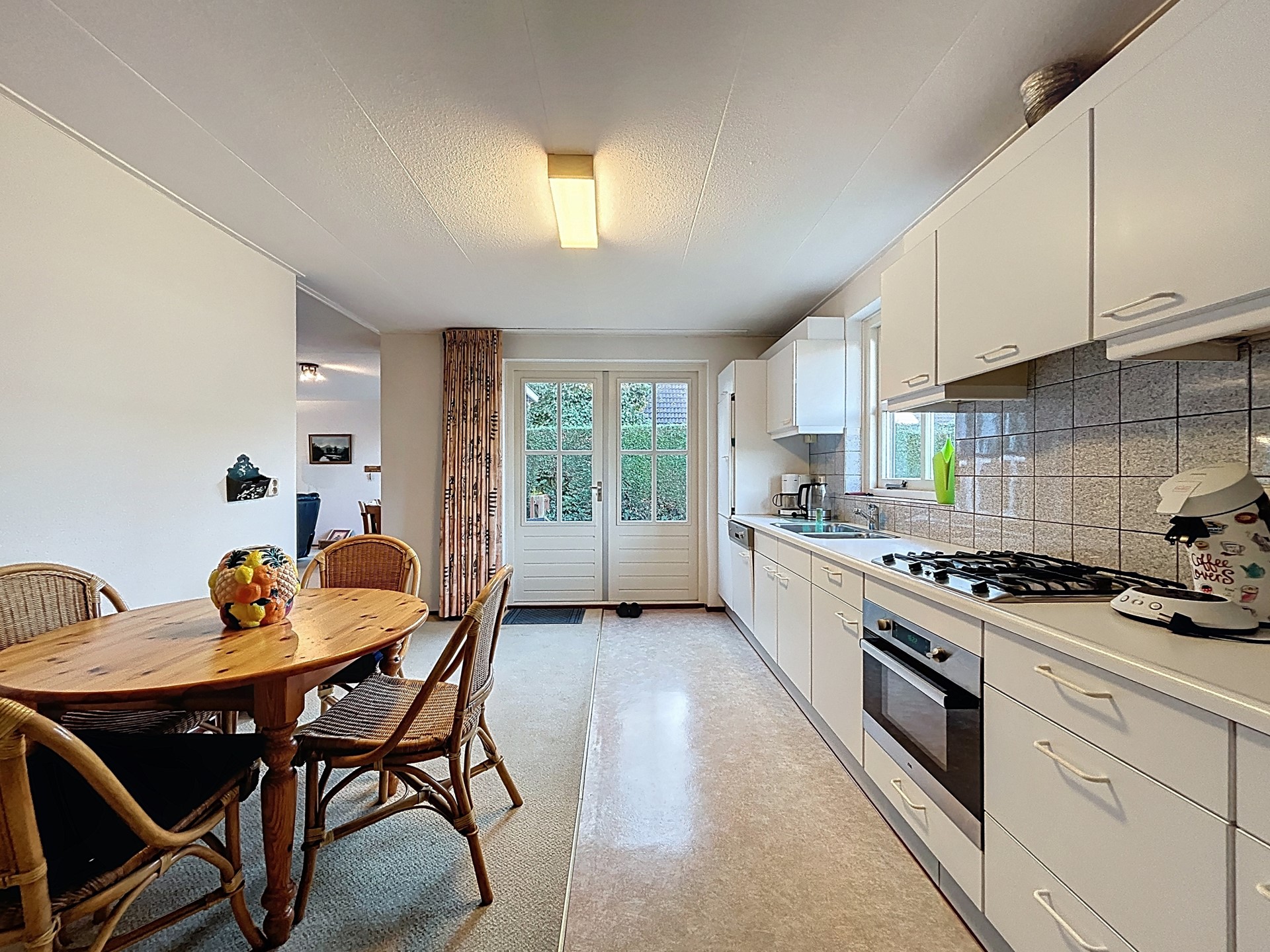 Stap de woning binnen via de voordeur om uit te komen in de hal. Deze hal biedt toegang tot het toilet en biedt plaats voor een garderobehoek en meterkast. Ook de eerste verdieping wordt betreden vanuit de hal. Vervolgens lopen we verder de ruime woonkamer in. Deze biedt genoeg plaats voor een gezellige zithoek aan de voorzijde en een eettafel aan de achterzijde. De woonkamer staat in een open verbinding met de keuken in de aanbouw. Ook hier is nog genoeg plaats voor een eettafel en zorgen de openslaande tuindeuren voor een verbinding met buiten. De keuken is voorzien van een nieuwe vaatwasser (2021), een koelkast, een combi-oven en een 4-pits gastoestel met afzuigkap. Aansluitend wordt nog de garage betreden. Met zijn 8 meter is dit een diepe garage, waardoor je er makkelijk de auto én de fietsen kan parkeren. Hier hangt tevens de unit voor de mechanische afzuiging.