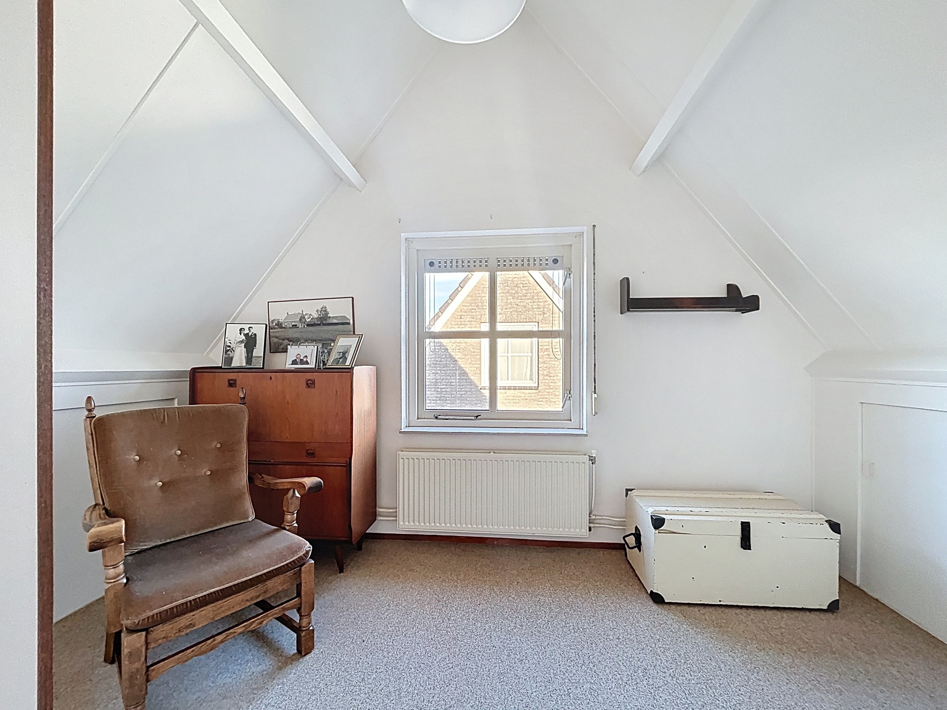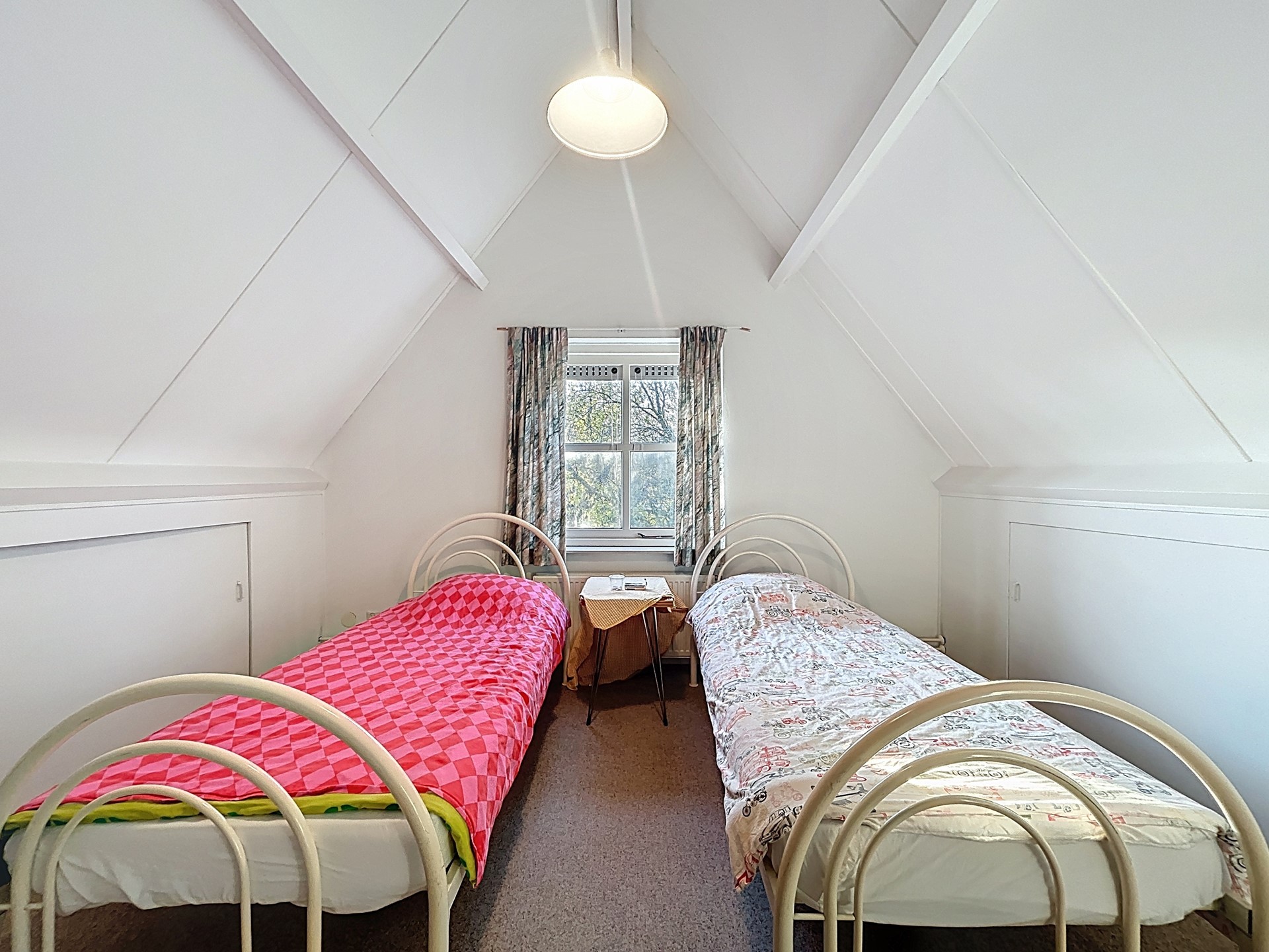 Middels de trap in de hal wordt de eerste verdieping betreden. Op de overloop heb je aan beide kanten toegang tot de slaapkamers. Tevens is de overloop voorzien van een opbergkast met de CV-ketel (2017) en de (tweede) badkamer met douche en wastafel. Beide slaapkamers zijn groot genoeg voor een tweepersoonsbed en zijn voorzien van inbouwkasten onder de schuine kanten. De overloop biedt nog toegang tot een kleine bergzolder.