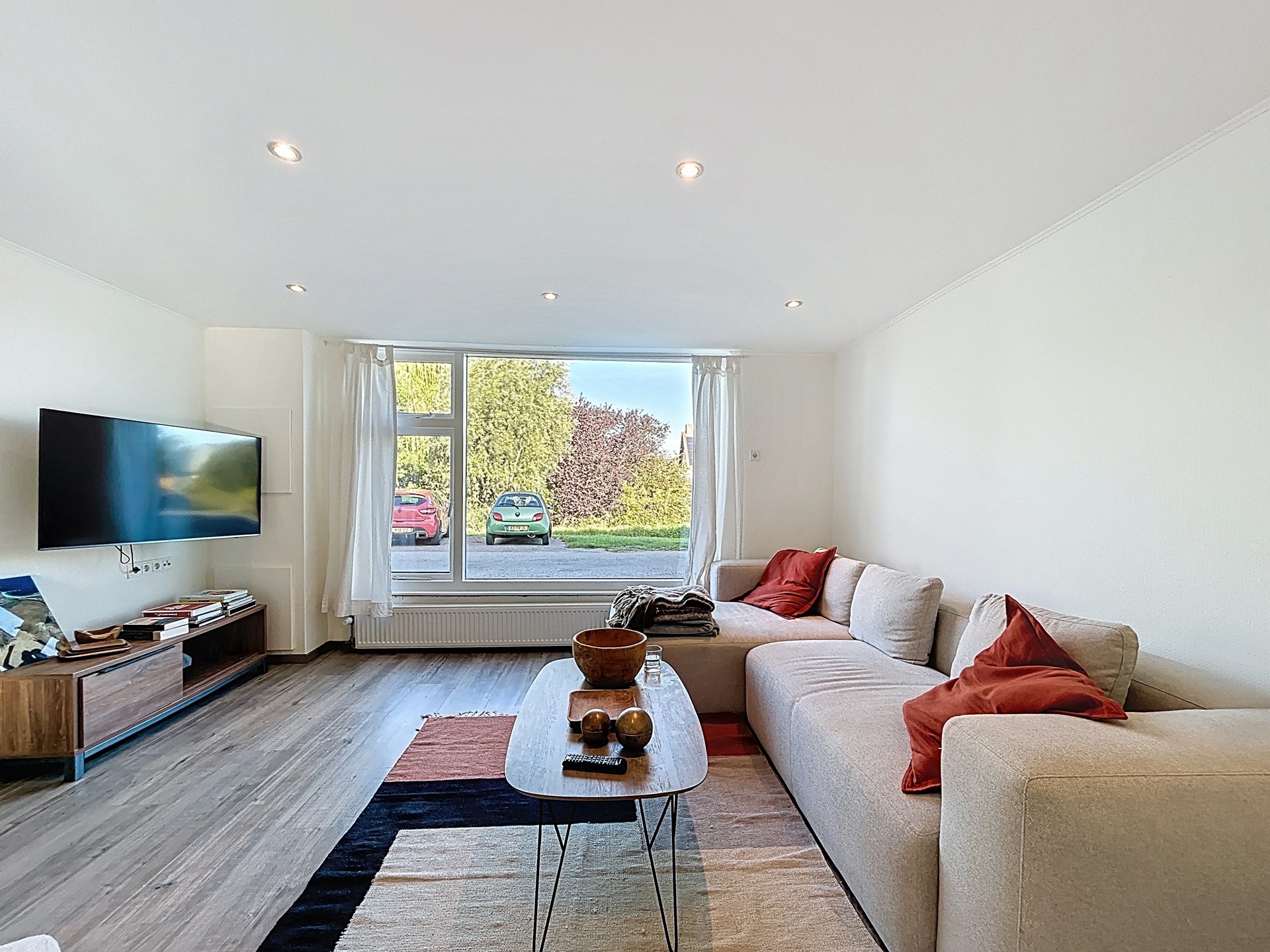 Je stapt binnen in een nette hal die toegang biedt tot de woonkamer. De lichte woonkamer is afgewerkt met een moderne laminaatvloer en vormt samen met de keuken een gezellige leefruimte. De keuken is uitgerust met een 4-pits inductiekookplaat, vaatwasser, combimagnetron en koelkast – alles wat je nodig hebt om heerlijk te koken. De moderne badkamer is eveneens op de begane grond te vinden en beschikt over een ruime inloopdouche, wastafelmeubel, hangtoilet en een design handdoekradiator. Aansluitend bevindt zich de praktische bijkeuken met extra bergruimte.