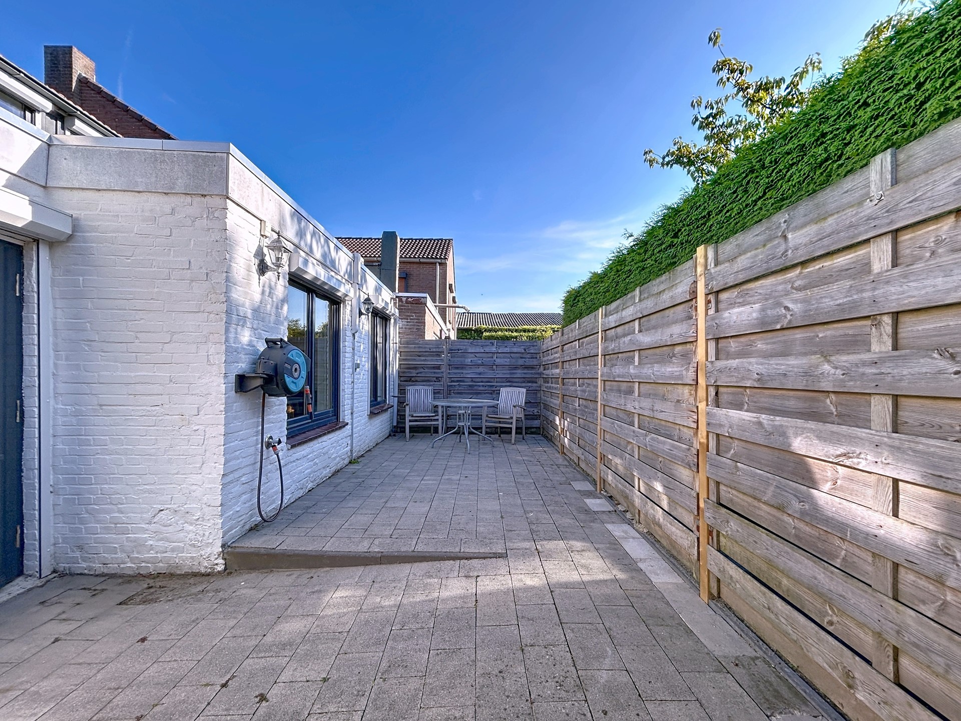 De achtertuin heeft een ligging op het zuidoosten en is voorzien van een fijn terras. Langs de poort kan je over het gedeelde pad aan de zijkant terug de voorkant bereiken. Tegenover de woning is voldoende parkeerplek.