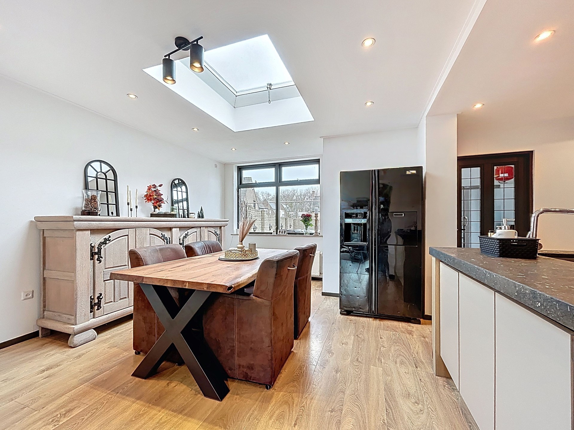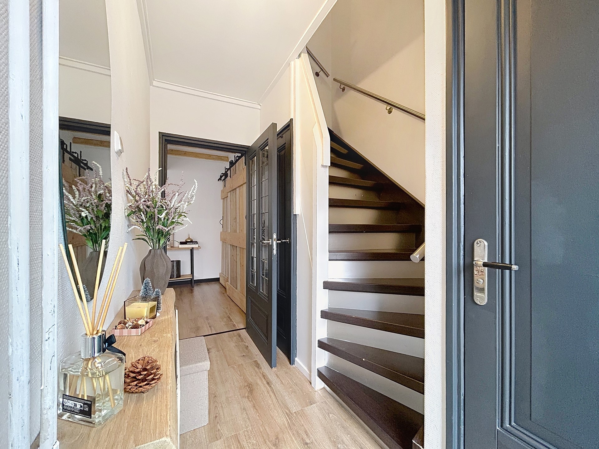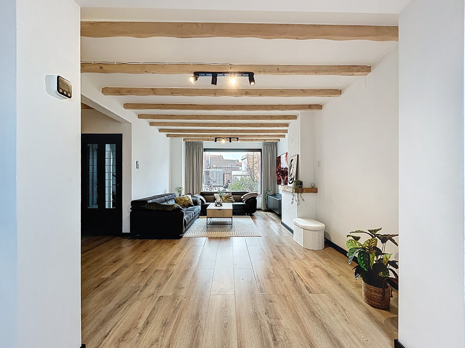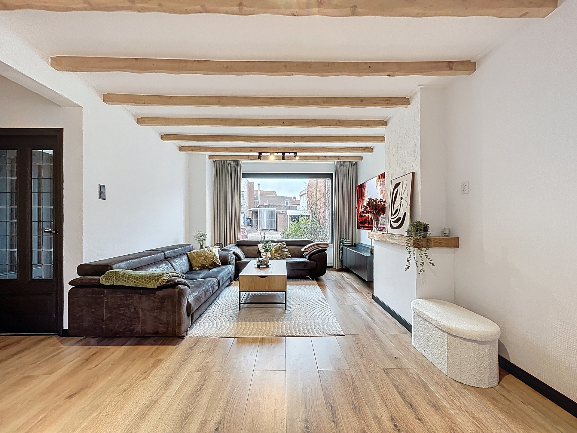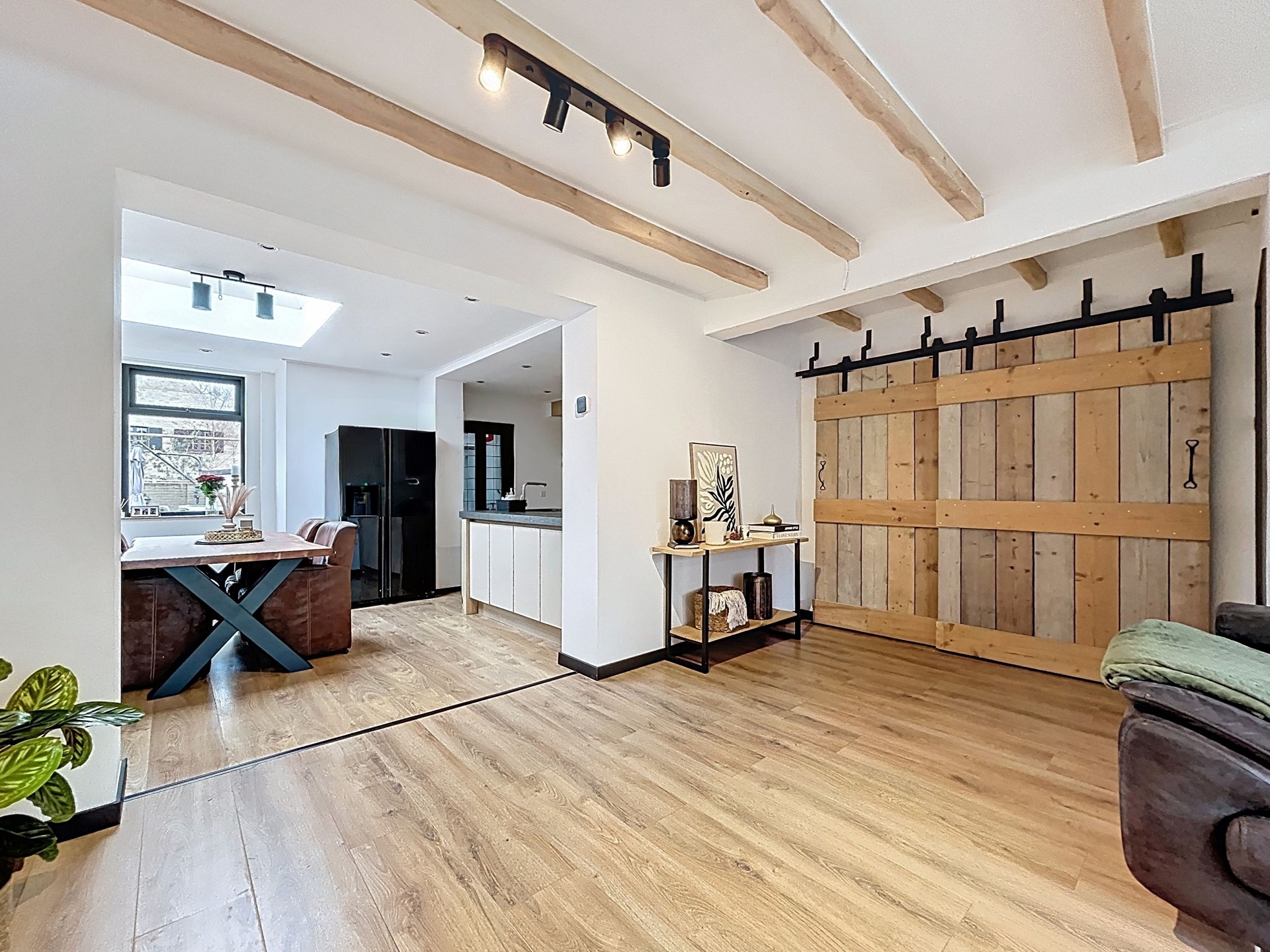 Middels de voordeur wordt de hal met het toilet, de trapkast en de meterkast betreden. De nieuw beklede trap biedt hier tevens toegang tot de verdieping. De meterkast is tevens recent uitgebreid. Vervolgens lopen we verder de woonkamer in en verbaas je hier over de ruimte die de woning te bieden heeft. Allereerst treffen we aan de rechter zijde een handige inbouwkast. Vervolgens heb je aan de voorzijde ruime zithoek en dankzij de aanbouw kan je aan de achterzijde een lange eettafel kwijt. De grote raampartijen en het dakraam zorgen voor genoeg lichtinval in de woning. Daarnaast zijn de muren en het plafond recent nog geschilderd en is de vloer (inclusief isolatiematten) nieuw gelegd. Het karakter wordt verkregen dankzij de fraaie balken en de haard. De inbouwspots in de aanbouw zorgen voor de final touch. In de aanbouw is tevens de keuken te vinden, deze is in 2019 geplaatst. De handige opstelling hiervan zorgt voor veel werkruimte en middels een kleine aanpassing de mogelijkheid om barkrukken aan te plaatsen voor het ontbijt. Nu is er extra opslagruimte gecreëerd en biedt de keuken verder veel kwaliteit met het natuurstenen blad en de inwerking in de muur. Let vooral ook op de kastenwand achter het kookgedeelte. Het is voorzien van Miele-apparaten zoals de combi-oven en stoomoven, inductie kookplaat, afzuigkap en vaatwasser. Tenslotte betreden we de bijkeuken. Ook deze is weer verrassend ruim en biedt genoeg plaats voor een wasmachine, droger en koel-/vrieskast. De huidige Amerikaanse koelkast is over te nemen. De CV-ketel hier is eind 2025 zelfs nog vernieuwd! Dit is de enige ruimte met een kozijn met enkel glas en langs hier wordt tevens de tuin betreden.