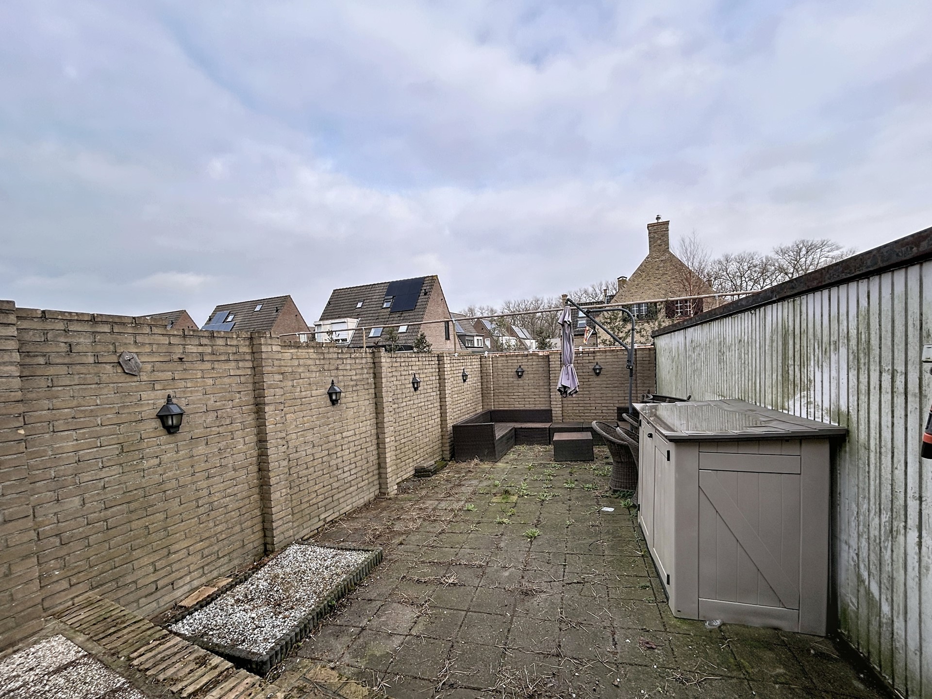 De achtertuin heeft een ligging op het oosten en een diepte van circa 12 meter. Dankzij die diepte kan je de hele dag genieten van de zon. Achter op het perceel is parkeergelegenheid gecreëerd voor je auto, ideaal in Sluis. Ook de garage is handig voor de opslag van je materialen, houd er rekening mee dat hiervan het dak vernieuwd moet worden. De stenen erfafscheiding is meer dan degelijk en zorgt voor karakter van de tuin.
