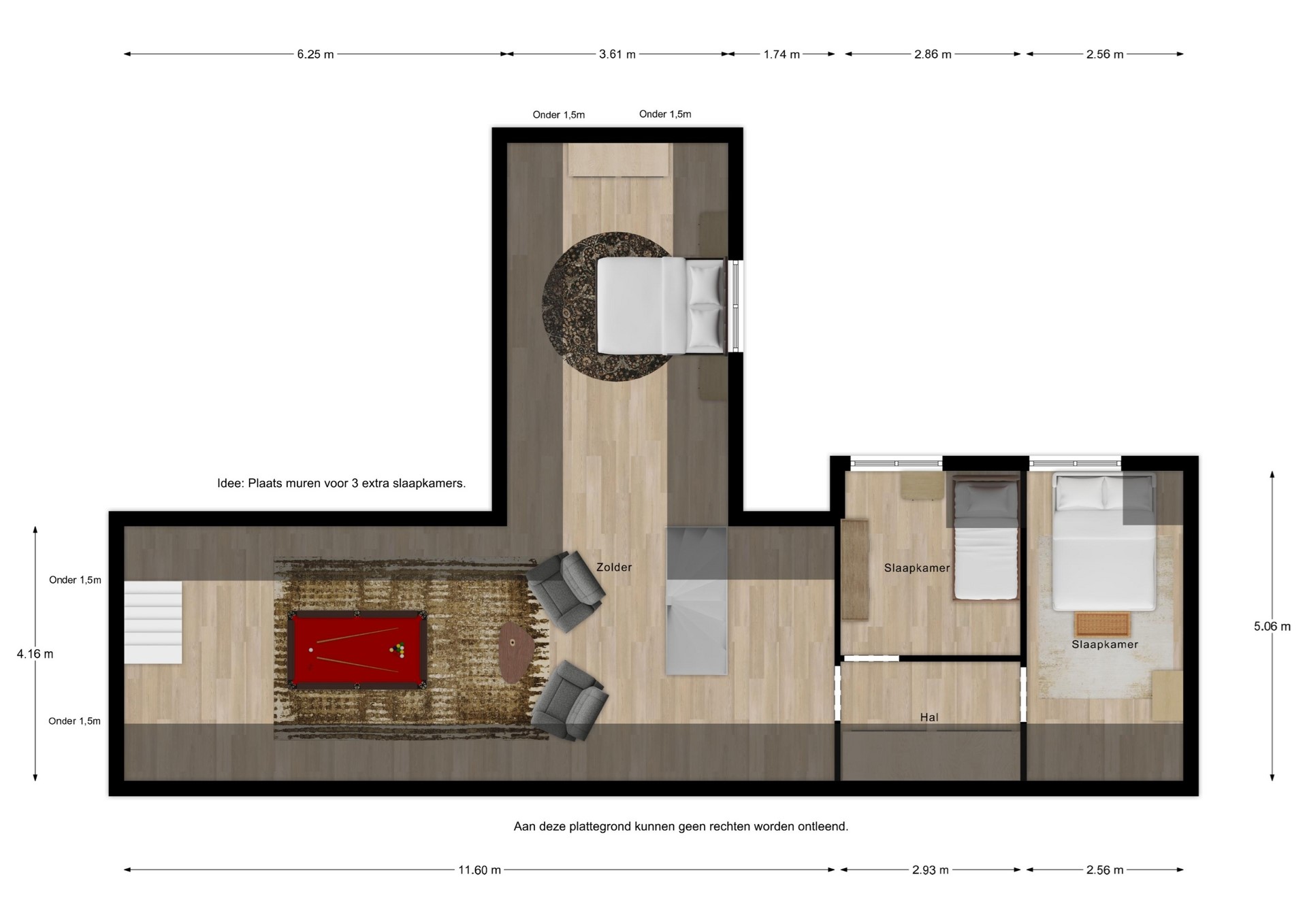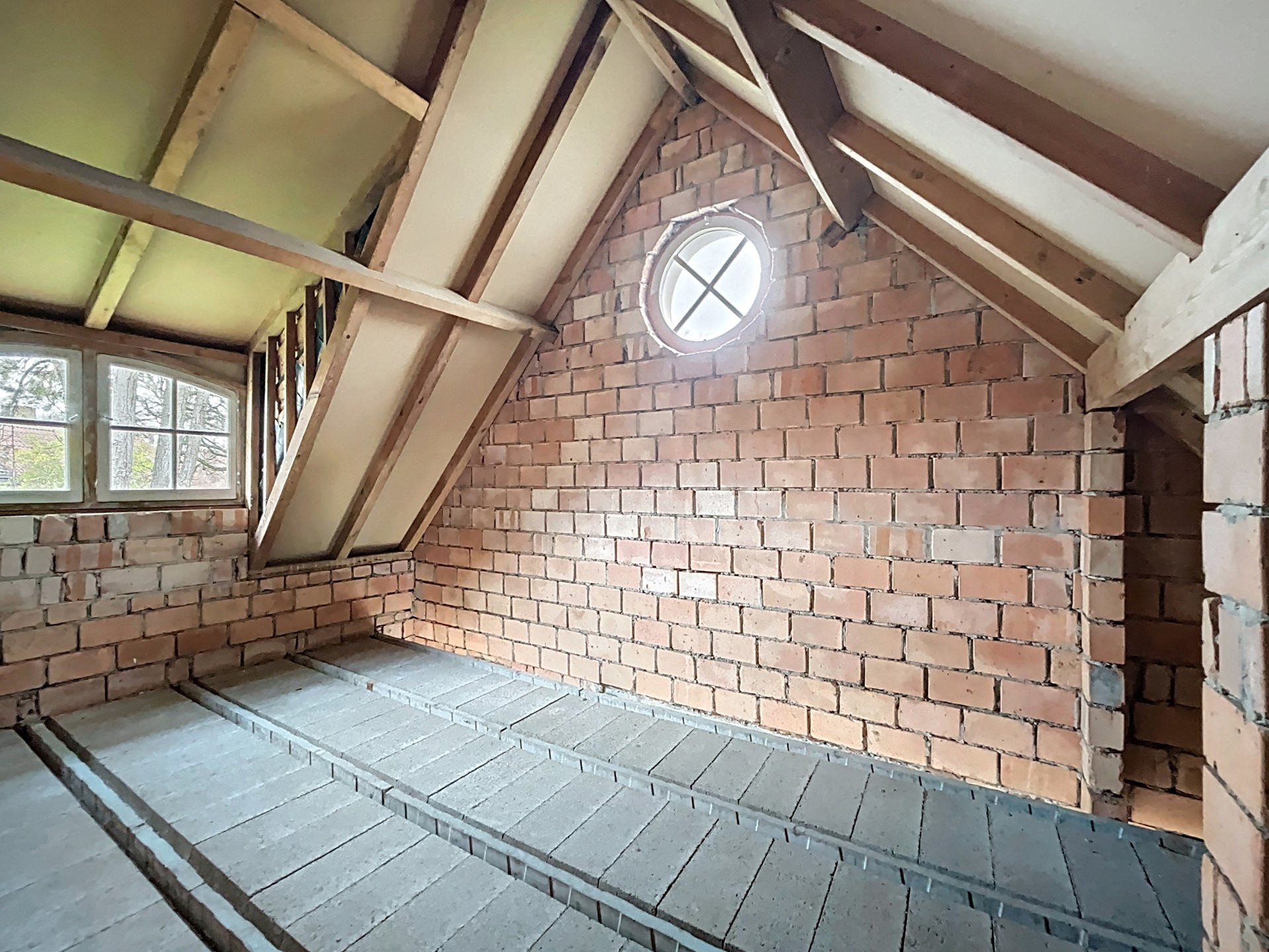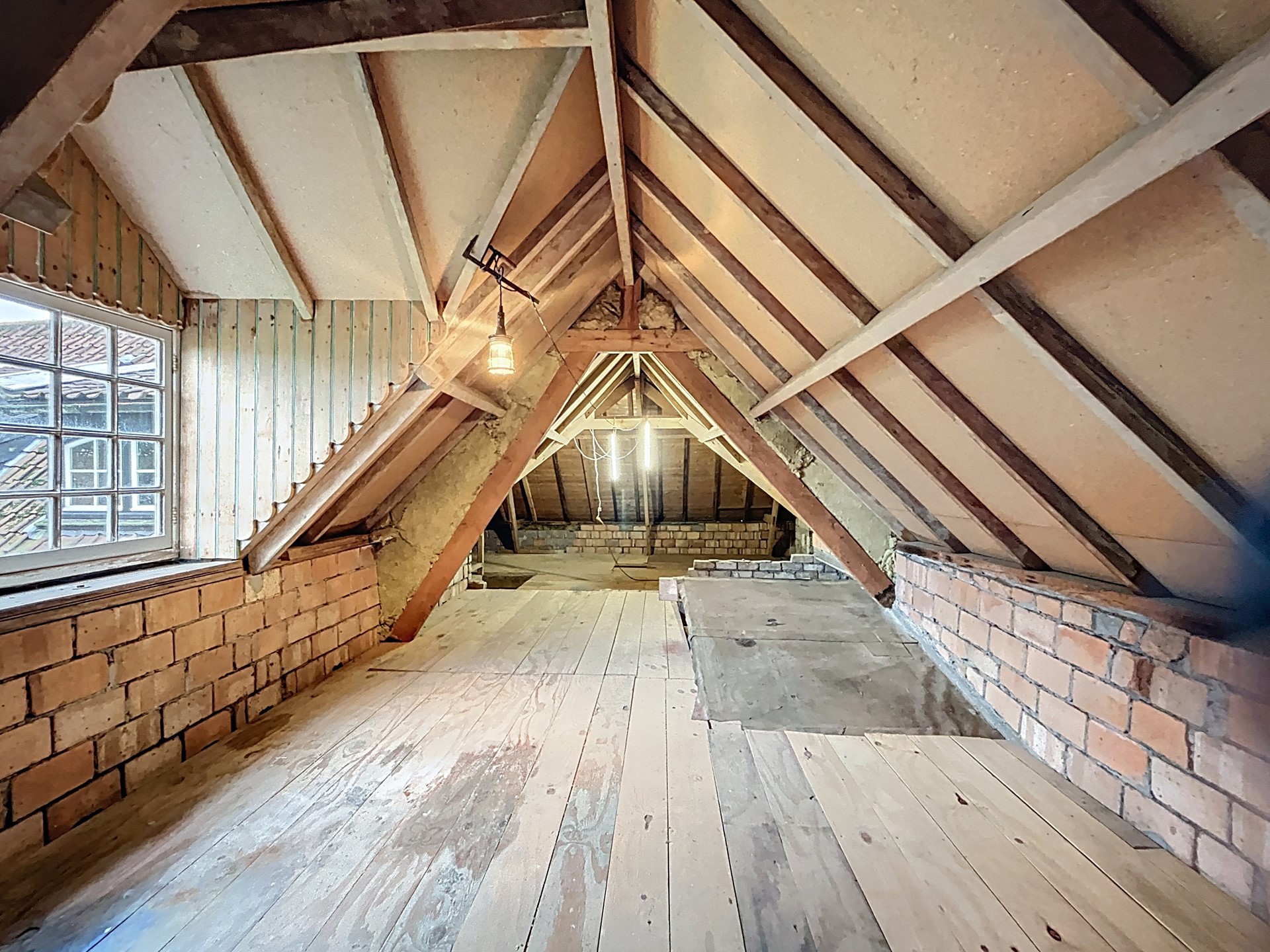 De verdieping kan dus via twee zijdes betreden worden. Dit geeft mogelijkheden. Nu is het een grote open zolder met twee aparte slaapkamers. Door tussenwanden te plaatsen zijn hier makkelijk drie extra slaapkamers te creëren. De drie dakkapellen brengen licht en ruimte binnen en het dak is geïsoleerd.