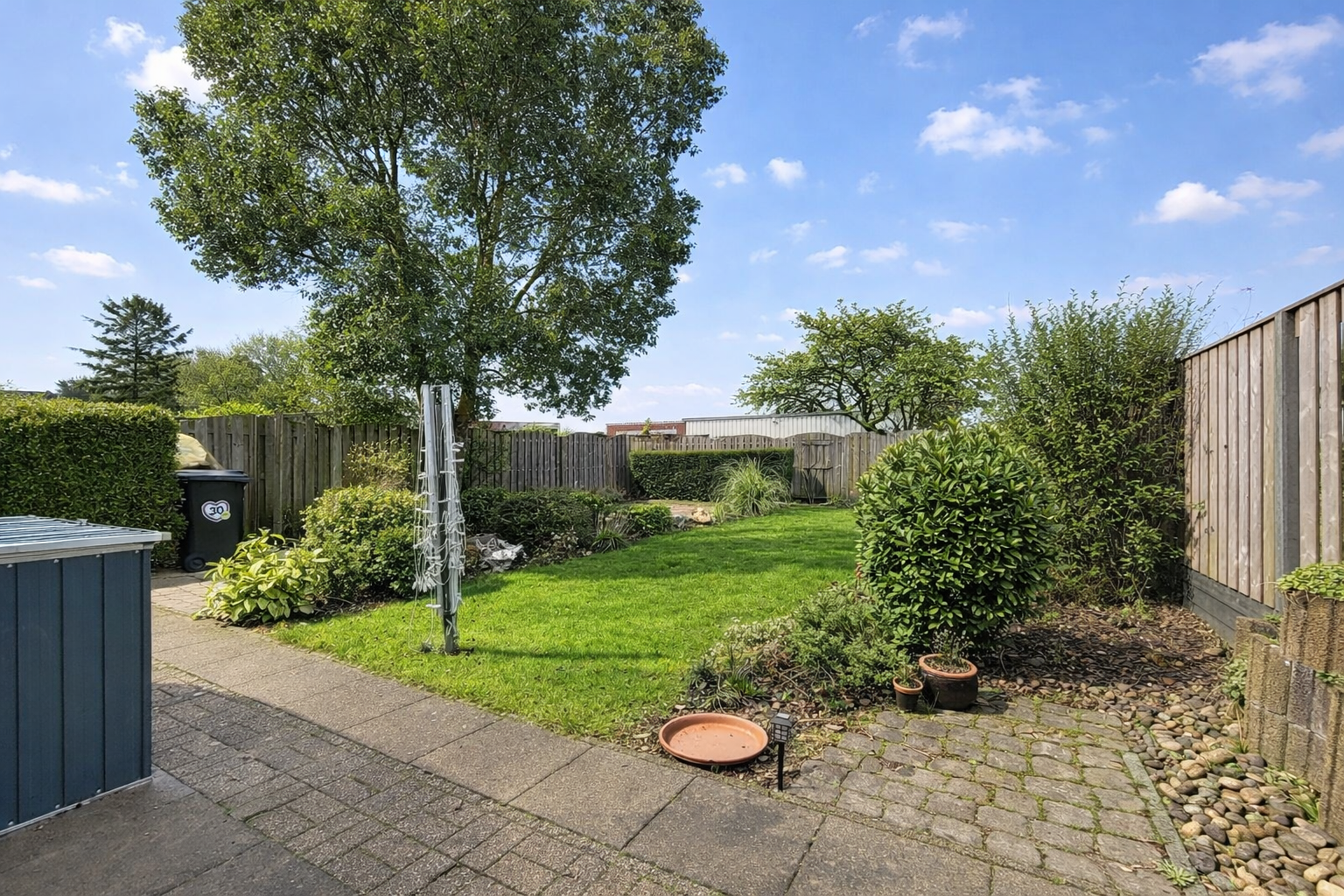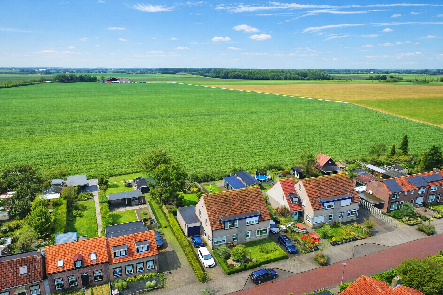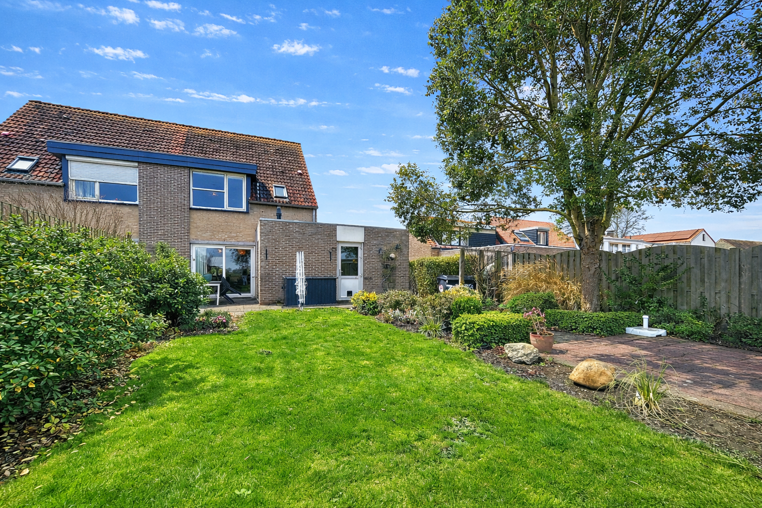 - Polderzicht vanuit de 15 meter diepe achtertuin.