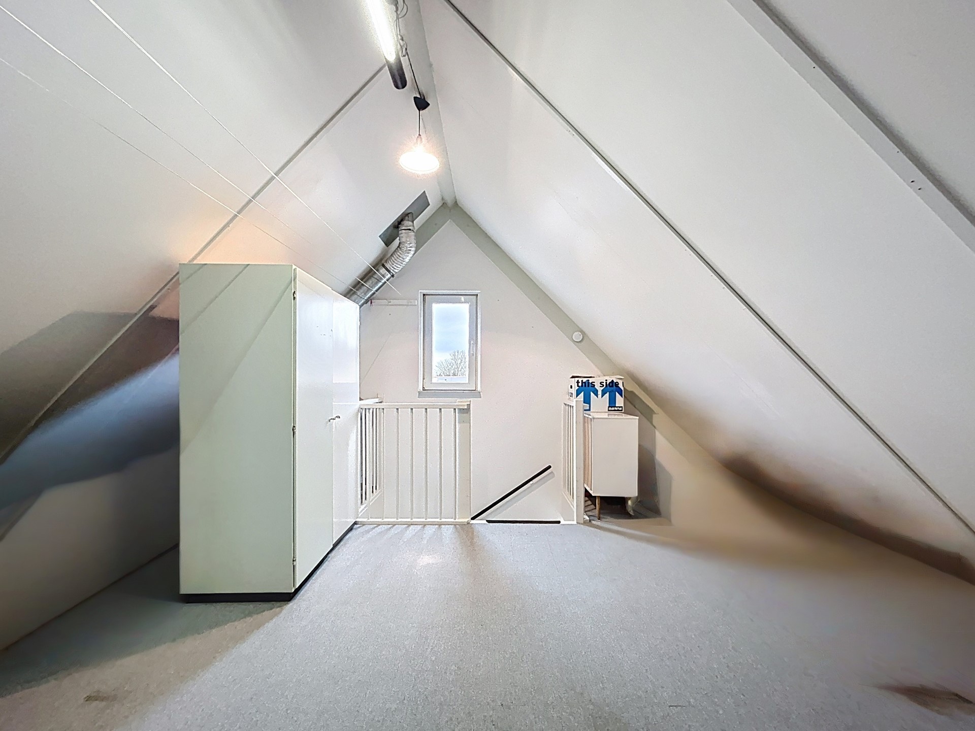 De tweede verdieping is ook toegankelijk middels een vaste trap. De hoge nok zorgt voor nog een grote ruimte welke nu in gebruik is als berging. Uiteraard is deze verdieping ook eenvoudig te gebruiken als slaapkamer. Tevens is op deze verdieping het WTW-systeem voorzien.