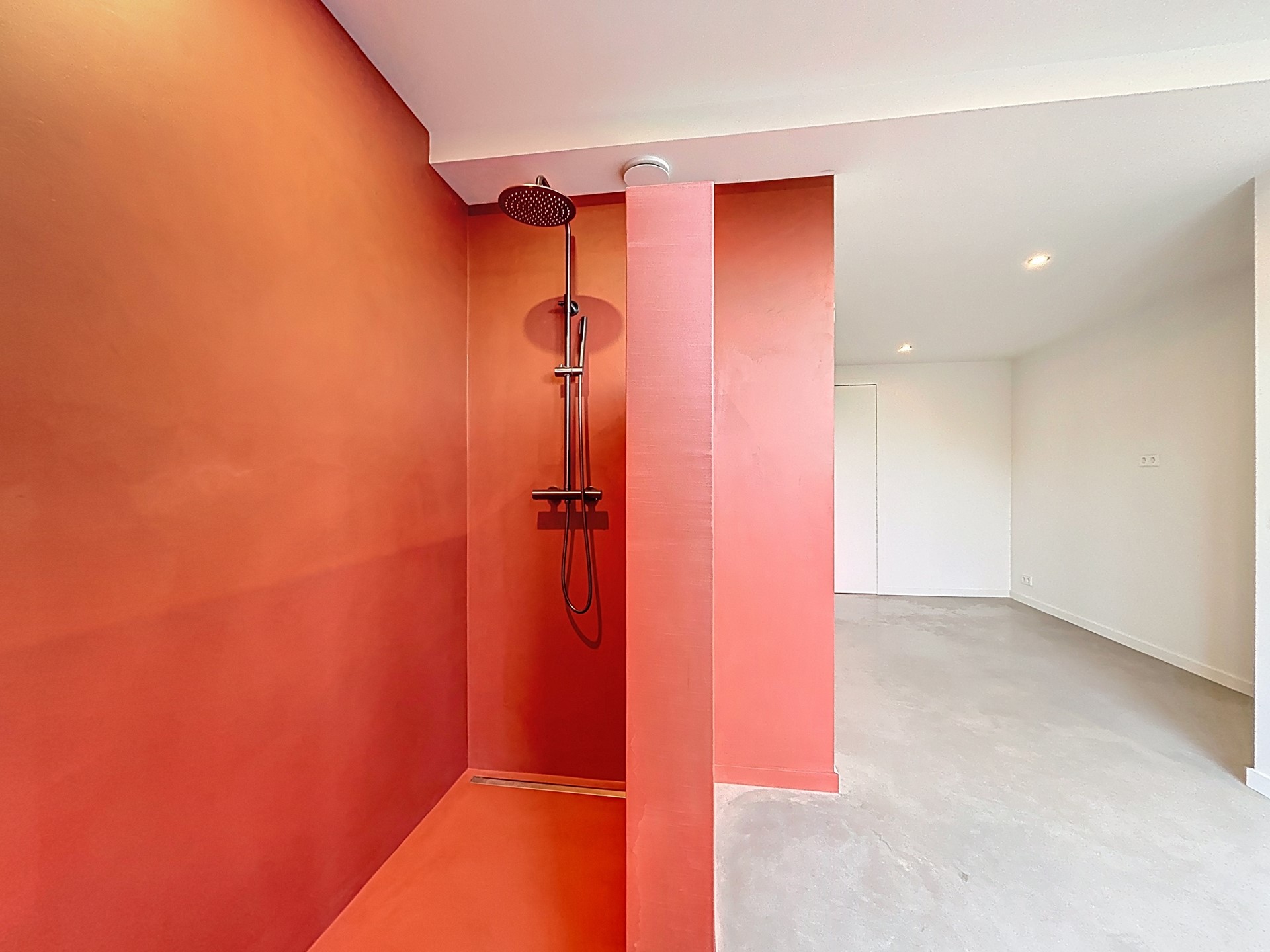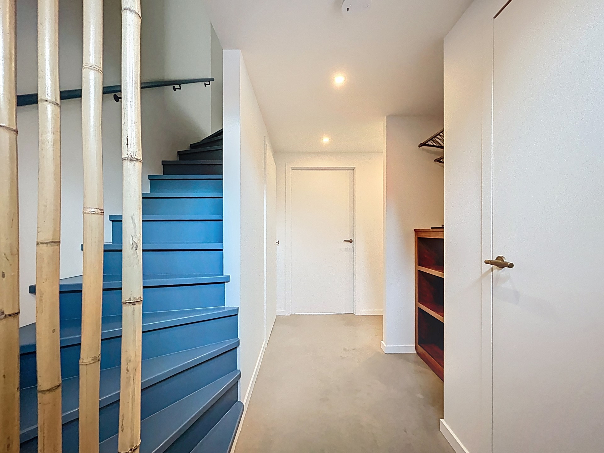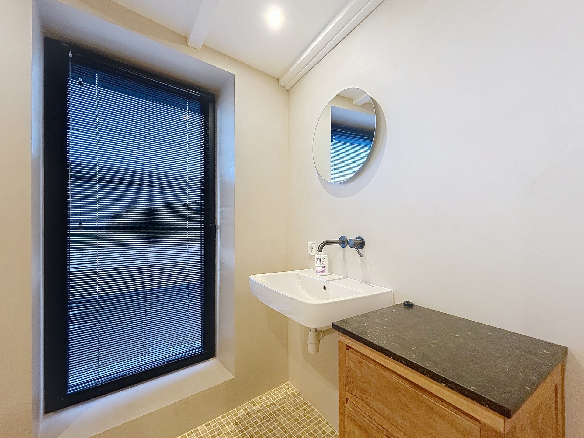 We komen aan bij de woning en parkeer de auto in de straat of achter het perceel. We betreden de woning middels de voordeur om in de hal te starten. Deze hal biedt plaats voor de trap, de nieuwe meterkast en de technische ruimte onder de trap en het toilet. Hier valt gelijk op hoe strak de afwerking is met de gestucte muren, de scharnierloze tussendeuren en de fraaie gepolijste betonvloer. De meterkast is uiteraard ook vernieuwd en voorzien van oneindig veel groepen. Het toilet is luxe met een hangtoilet en een fonteintje en de technische ruimte onder de trap is voorzien van de warmtepomp met boiler. Lopen we rechtdoor, dan stappen we eerst de slaapkamer binnen. Deze ruime slaapkamer biedt alle plaats voor een tweepersoonsbed en een kledingkast. Aansluitend is de badkamer voorzien met een wastafel en inloopdouche. Deze douche is aangesloten op een doorstroomboiler. Tenslotte hebben we op de begane grond uiteraard nog de woonkamer met open keuken. De voorzijde is ingericht als woonkamer met ook weer alle plek voor een gezellige zithoek. Aansluiten is de open keuken uiteraard ook de nieuwste van het nieuwste en is voorzien van apparaten als een vaatwasser, koelkast, inductie kookplaat met geïntegreerde afzuiging en een spoelbak. Tevens is hier de mogelijkheid om een wasmachine in te verwerken. Aan het natuurstenen keukenblad is ook een leuk barretje gecreëerd voor het ontbijt. In de keuken is tevens genoeg ruimte voor een lange eettafel. De achtertuin is toegankelijk middels openslaande tuindeuren in de woonkamer en de slaapkamer.
